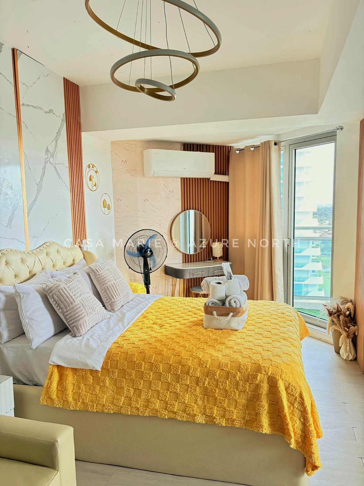 This is Clark's Newest Designer's Suites that was conceptualized for travellers, couples and friends to experience a new level of staycation in this eclectic-themed villa stay in Clark 10 mins away from Clark Airport 3 mins away to SM Clark 1 min to KoreanTown Enjoy this well-designed unit while taking IG worthy photos in our custom solihya couch with Netflix, A 360° view of Clark Airport Vanity mirror Premium bedroom Window Pod is located in Restituta Bldg, Friendship Hi-way, Angeles City