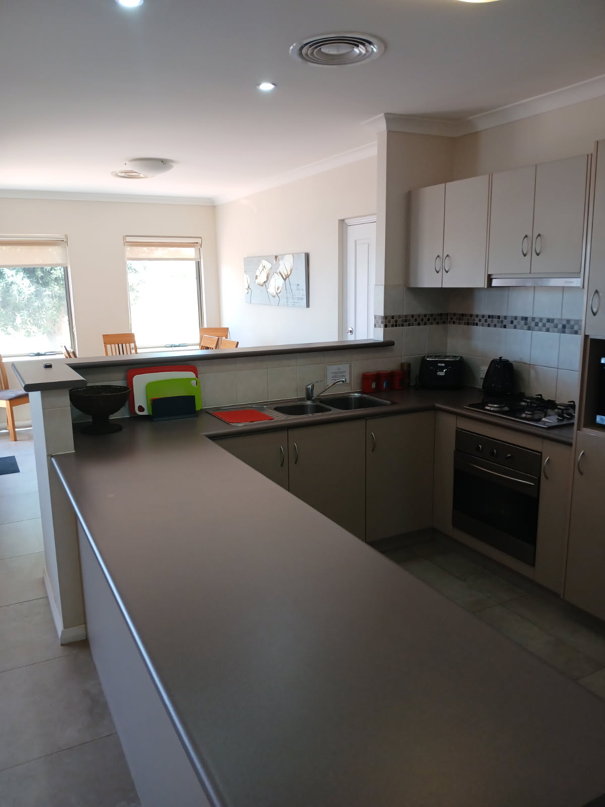 Brand new, modern 2-bedroom accommodation offering peaceful country living with stunning views. Located just 20 minutes north of Geraldton, close to Coronation Beach—one of the world’s best spots for kite- and windsurfing, with food van on weekends. Event locations like Nukara Farm and Nabawa Valley Tavern are nearby. Pets are welcome if they bring their own bed and are strictly kept off the furniture. undercover shed space. Relaxing getaway with all the comforts of home.