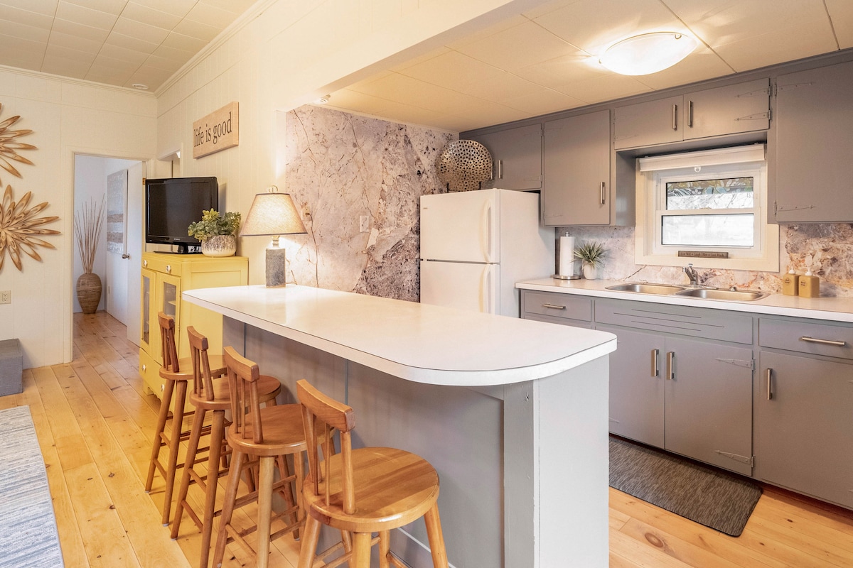You're not staying at grandma's cottage here! Our neat and tidy cottage is full of updates & space for your whole family, friends and pets. 2 private bedrooms & space to pack in the kiddos up in the loft. We're just a brief walk away from 1 of 8 private lake accesses you're welcome to use! Our outdoor space is perfectly set up for vacation and has a BRAND NEW HOT TUB! Enjoy your coffee on the front deck, grill on the back patio & sit around the bon fire after dark in the privacy fenced yard.