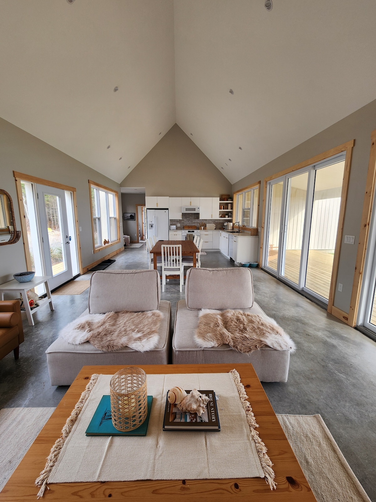 Harbour Acres Cottages offering: 5⭐"The Harmony Grand". A private modern log cottage perched on the serene shores of Molega Lake; Nova Scotia's South Coast cottage country. Experience this two bedroom, full bathroom, kitchen, & living room lakefront accommodation for either a short overnight stay or a longer vacation. We cater to all travelers! Breakfast is included*
