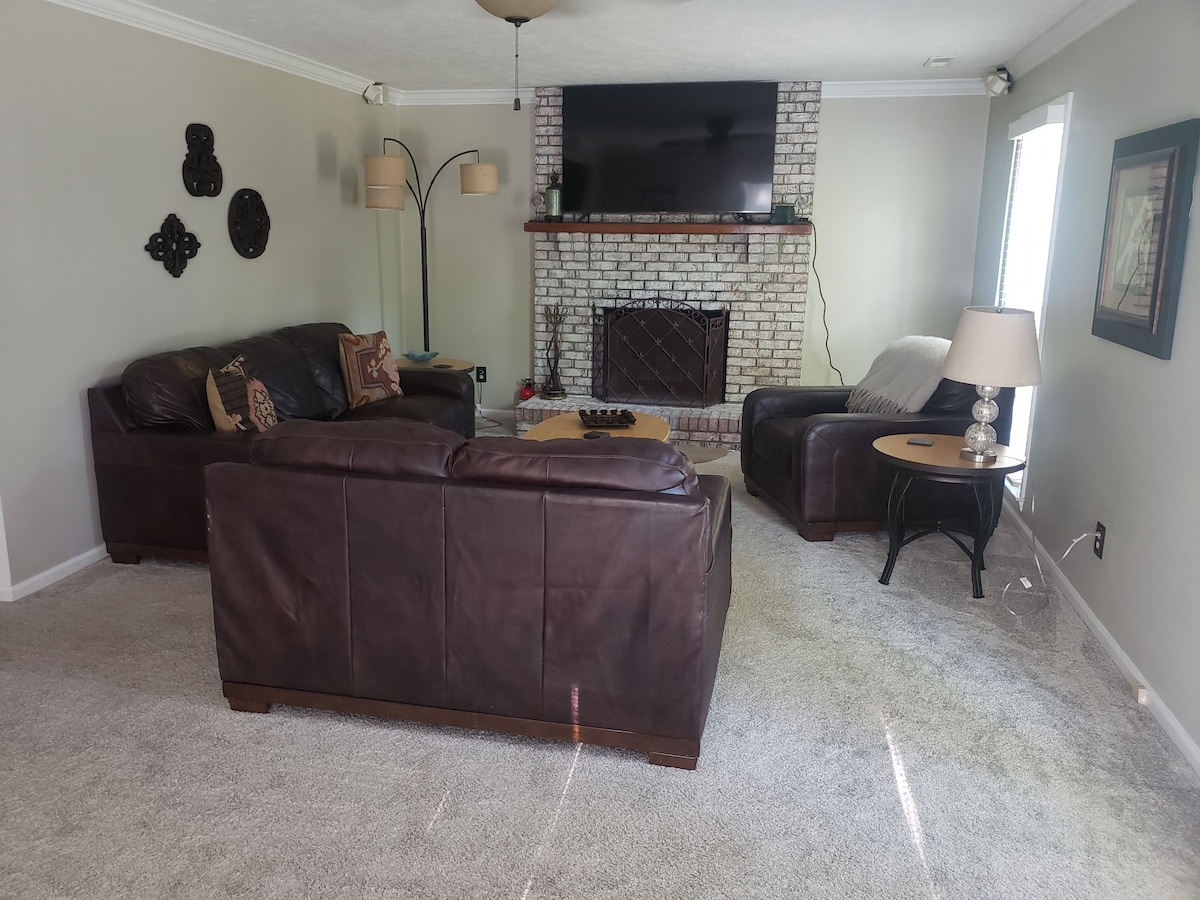 This guest suite consists of one bedroom (King bed) and a full bath. The private entrance is located on the front porch and the space is closed off from rest of the home. Space does not include a living room or kitchen. but there is a small refrigerator, microwave, coffee-maker, comfortable sitting space, and a large porch to relax. There is also an air purifier in the room- with HEPA filtration, removing 99.9 of all particles in the air. The space is the size of an average hotel room.