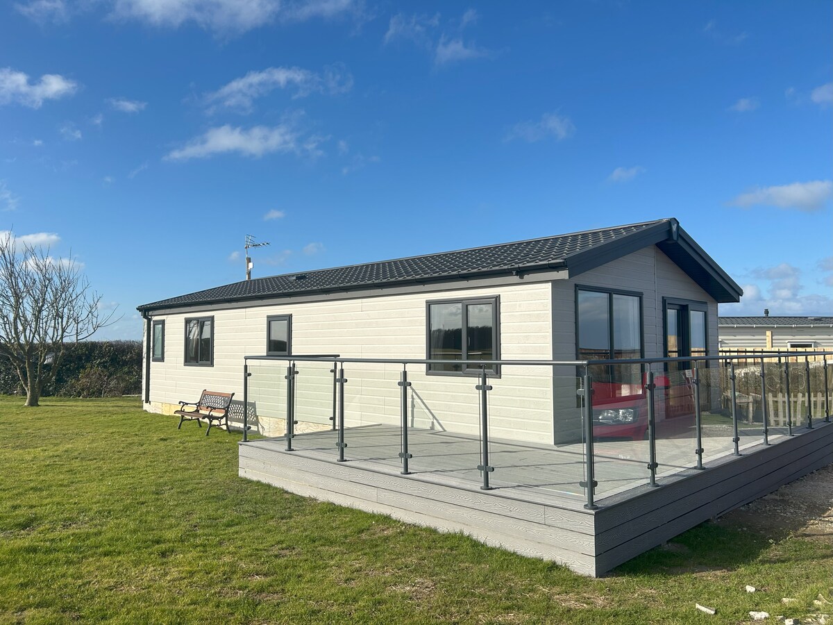 Forget your worries in this spacious and serene space. Sunny Orchard is a brand new (2025) 40ft x 20ft lodge. Situated on a farm, you can enjoy the far reaching views across open fields and towards the sea from the extensive decked area. We are a short walk to the beach and South West footpath and the bus stop. With a Master bedroom with king bed and ensuite and a twin room with 2 x 3ft singles, plus a sofa bed, this lodge is perfect for couples, quiet groups or family get away.