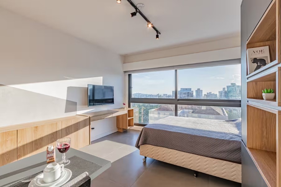 Studio with high-end decor, designed for short or long stays. Ideal for couples or leisure or business travelers. Located in Porto Alegre, it is close to pharmacies, bakeries and markets, as well as offering easy access to the city's main attractions. Located in one of the most valued regions of Porto Alegre, the space has all the infrastructure to ensure a comfortable and pleasant stay. We will be happy to welcome you here!