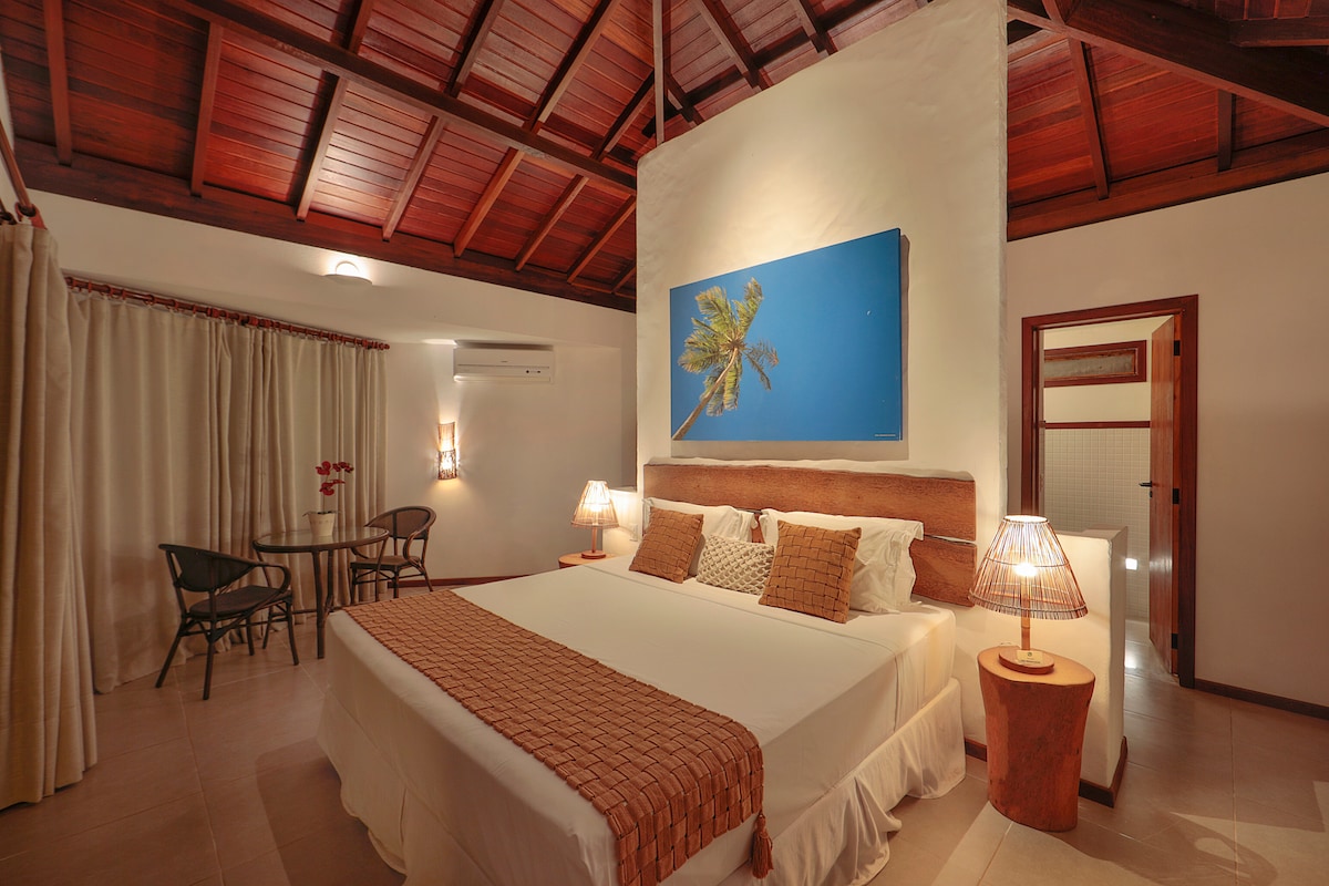 Os bangalôs dispõem de cama king size e medem 43m². São equipados com TV Smart de 43" com TV a cabo e ar-condicionado split. A varanda oferece uma rede para relaxar. O espaço conta com frigobar, bwc, lavabo, e ducha. Segurança é garantida com cofre. Amenities L'Occitane estão disponíveis.
