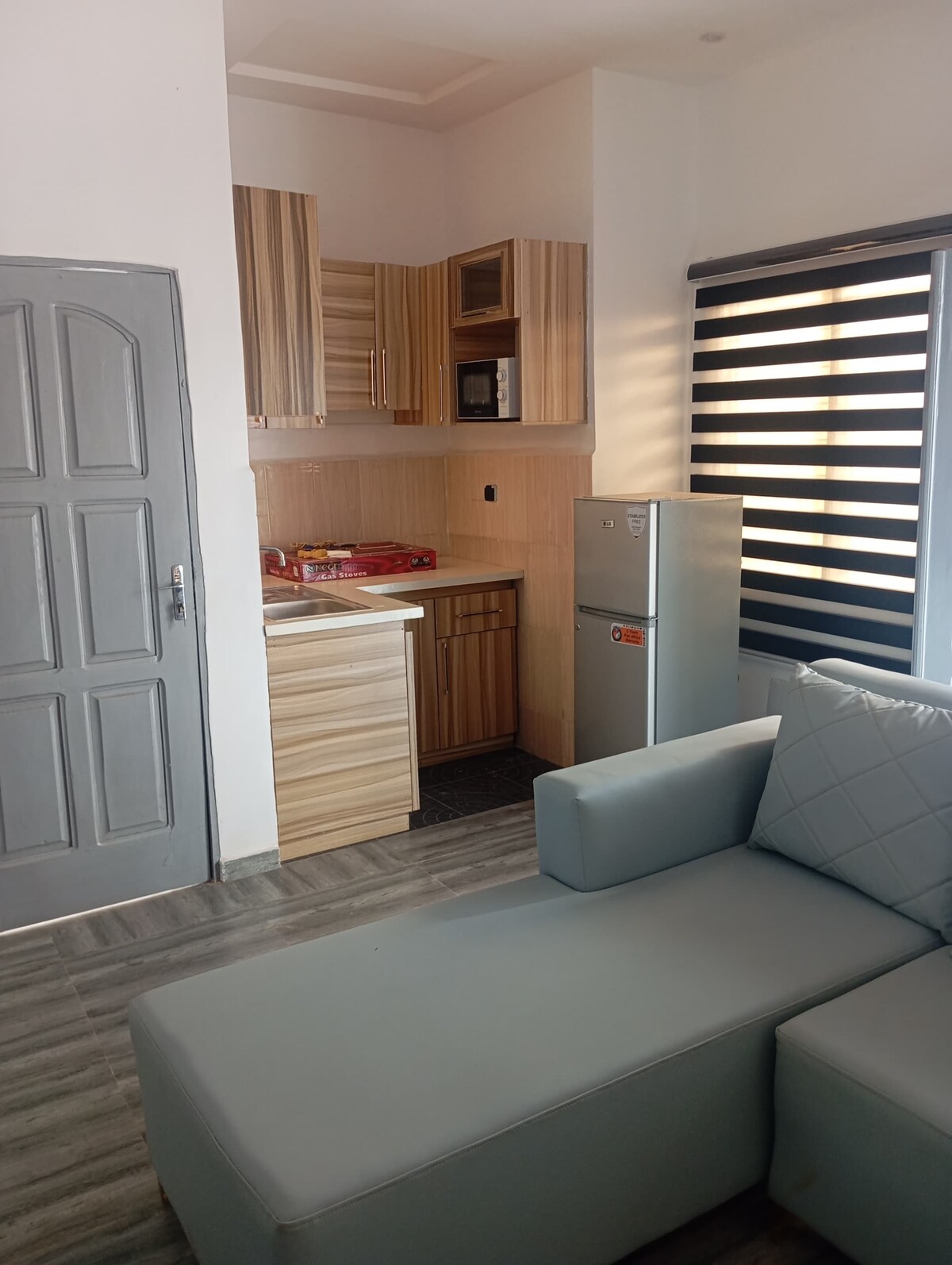 ⚠️ Veuillez noter qu’une contribution de 2 000 FCFA par nuit est requise pour l’électricité. ⚡ Appartement d'une chambre au style moderne et occidental, alliant confort et élégance. Idéal pour une vie urbaine et une décoration contemporaine. A modern one-bedroom apartment featuring sleek design elements, open-concept living spaces. It includes a stylish kitchen, a cozy living area, and a comfortable bedroom, all adorned with neutral tones perfect for a chic urban lifestyle
