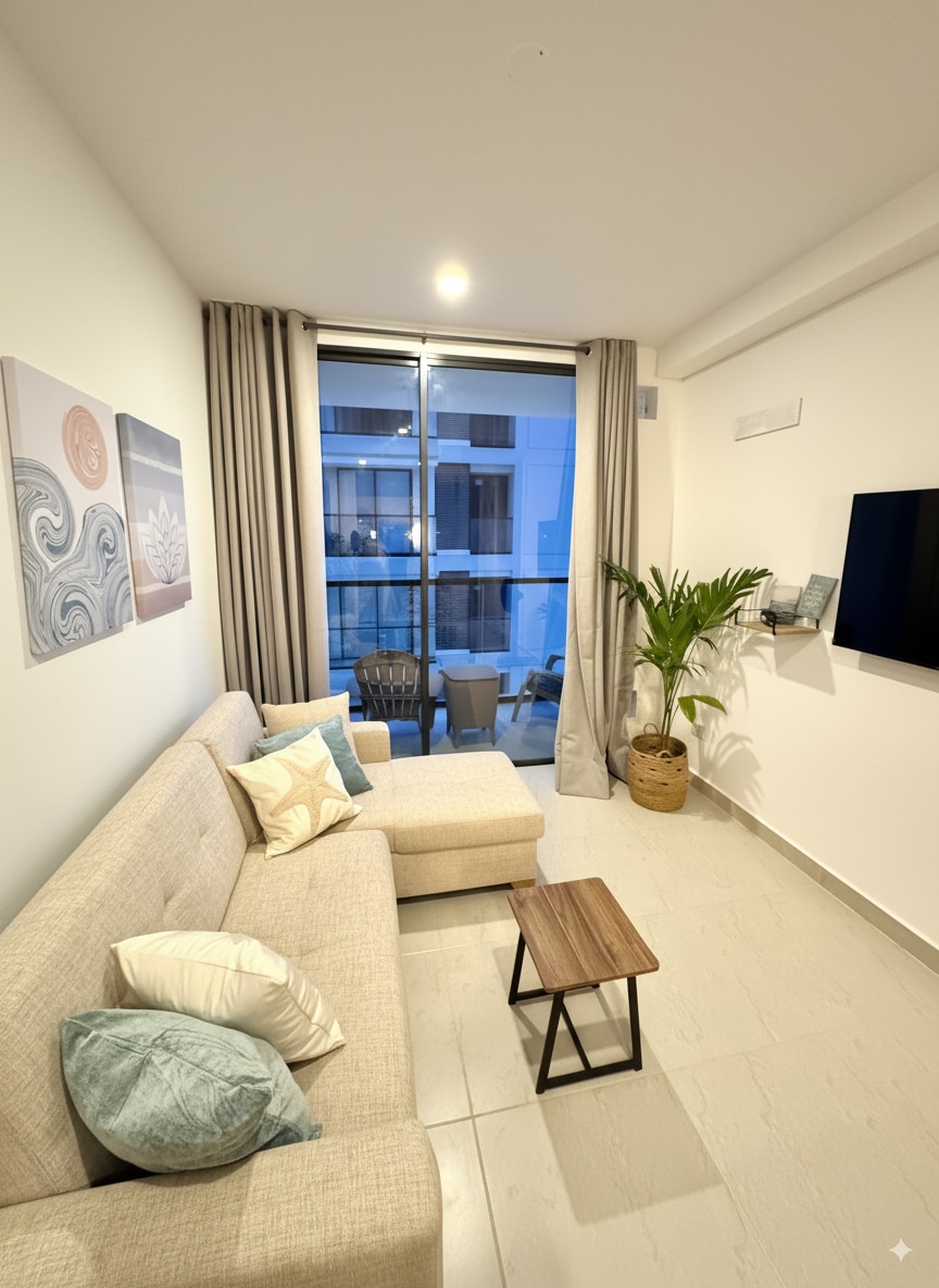 Apartment located in the exclusive Pozos Colorados area in Santa Marta, specifically in the Samaria Club de Playa Condo, one of the most modern in the city. In our apartment, you can enjoy the pleasure of being in front of the sea with unique sunsets, in addition to enjoying a totally modern condo with the best social areas with the privilege of having a semi-private beach. Our guests will be able to enjoy an excellent fully equipped apartment.