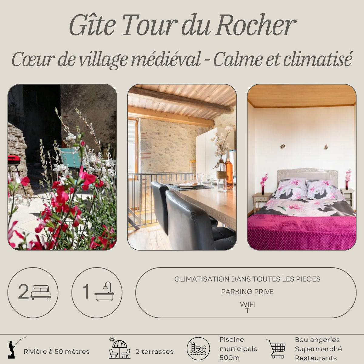 Beautiful 19th century character tower, just renovated and air-conditioned, with 2 bedrooms that can accommodate 5 guests. You will find all the comforts to spend a short or long stay on the medieval historic site of Luzech. With its terrace built with Quercy stones, you can enjoy the benefits of the proximity to the village center while maintaining your tranquility. Private parking. Municipal swimming pool 300 meters away and nearby nautical base 2 km away