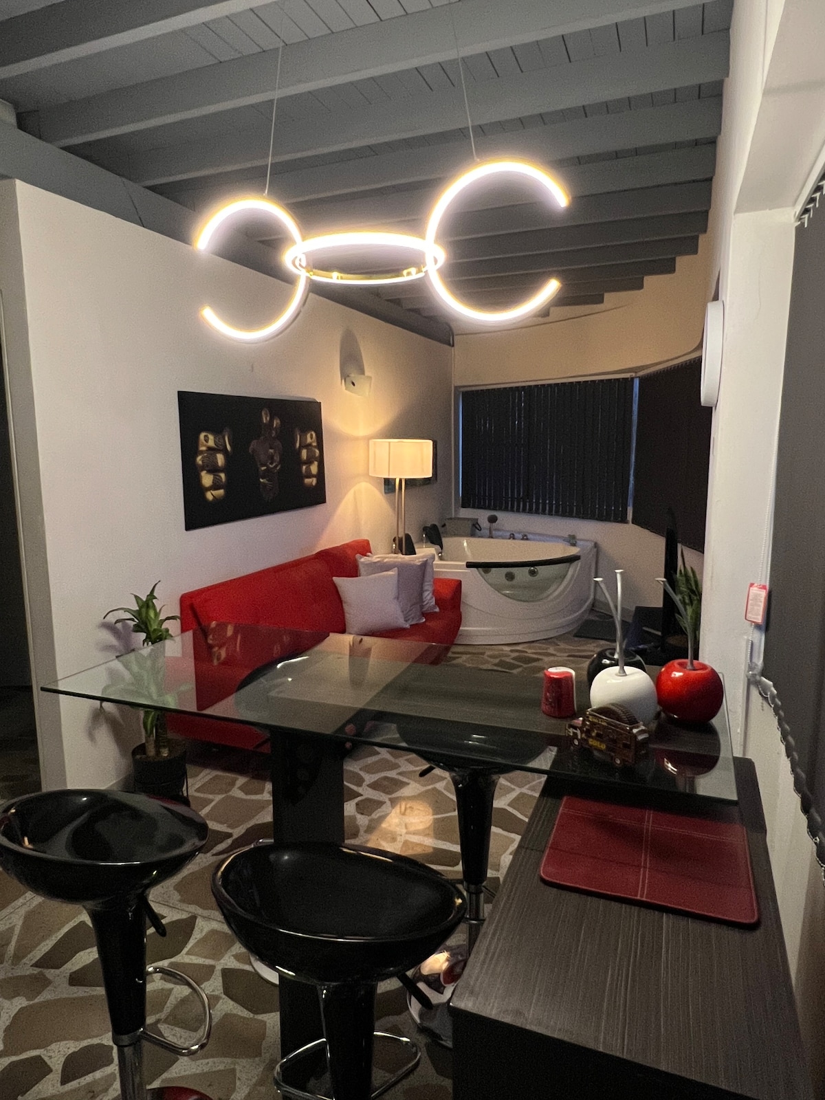 Fully renovated luxury apartment with privat jacuzzi, terrace & AC located in the best residential area of Laureles. Within 5 mins walking distance of “Unicentro mall”, restaurants, groceries stores, parks, bicycle rentals, bicycle routes and multiple entertainment options. For reservations of 3 days or more, choose between a bottle of wine or a jacuzzi kit!!!!