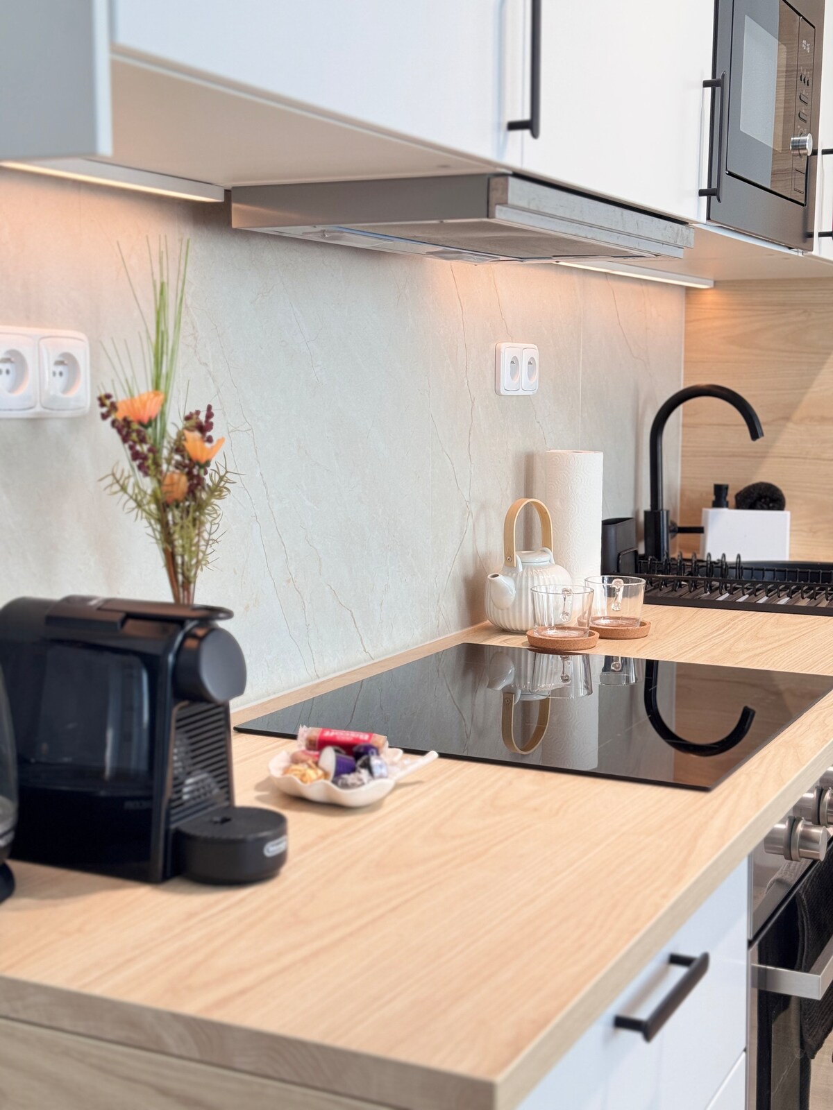 Welcome to our peaceful apartment situated in a perfect location far from the crowds but close to the city center. Rest in a comfortable bed, on the balcony or in the cozy bathtub ;) Enjoy high-speed Wi-Fi Chromecast A fully equipped kitchen with dishwasher Washing machine Luggage storage Our focus is on beautiful interiors, cozy comfort, and spotless cleanliness, all to provide the perfect stay for you!