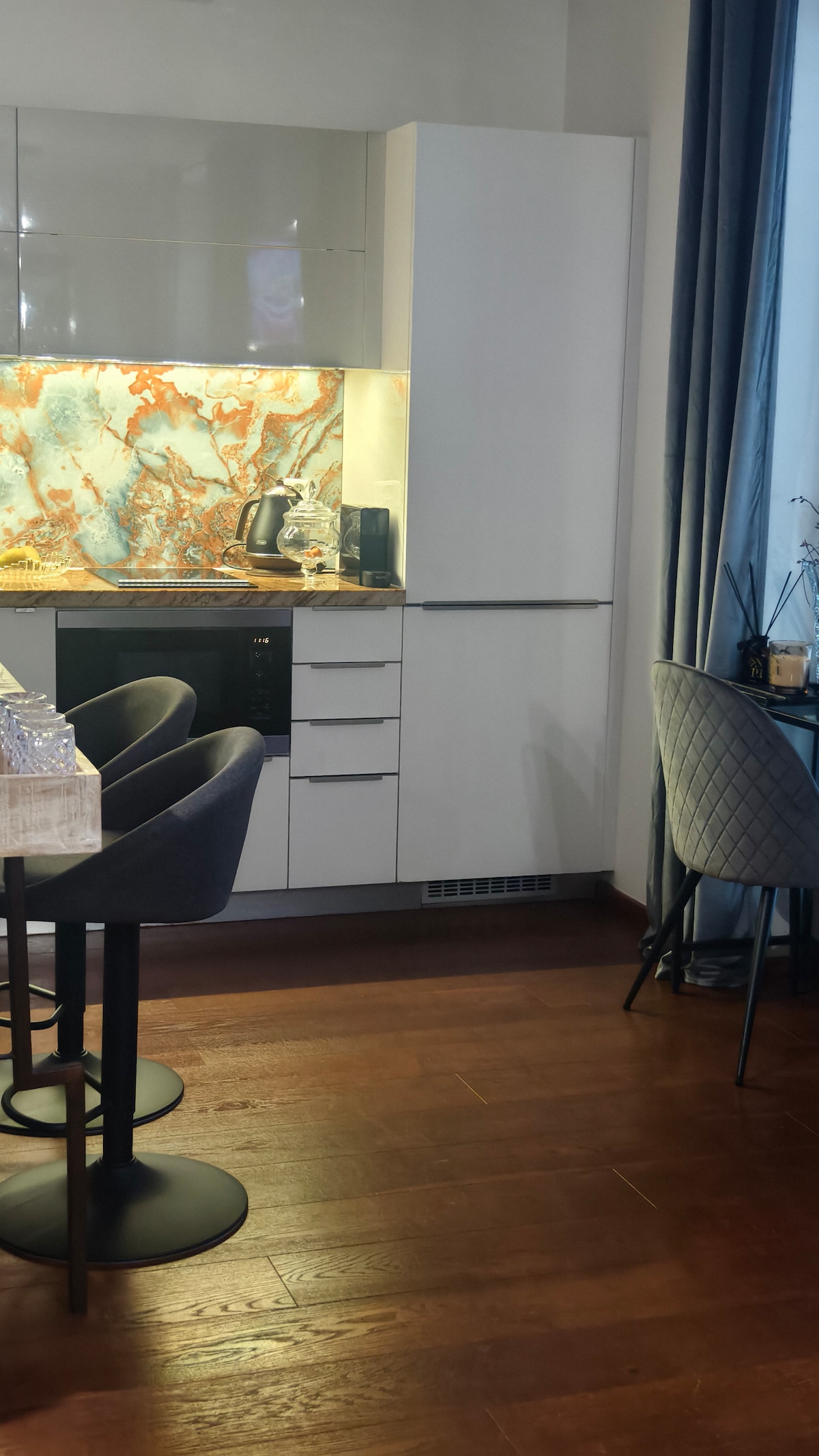 Welcome to our peaceful apartment situated in a perfect location far from the crowds but close to the city center. Rest in a comfortable bed, on the balcony or in the cozy bathtub ;) Enjoy high-speed Wi-Fi Chromecast A fully equipped kitchen with dishwasher Washing machine Luggage storage Our focus is on beautiful interiors, cozy comfort, and spotless cleanliness, all to provide the perfect stay for you!