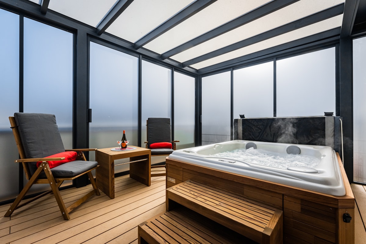Nový moderní apartment, nacházející se v klidné častí Prahy v bezprostřední blízkosti parku a zároveň vzdálený jen 15 minut od centra Prahy. Je vhodný pro 2 osoby vyhledávající ruch velkoměsta a zároveň si po namáhavém dni chtějí nerušeně užít příjemný večer s posezením na soukromé terase 30m2, pod pergolou ve vlastní vířivce s celoročně vyhřívanou vodou či relaxovat v prostorné privátní sauně. Ke zpříjemnění romantiky stačí jen zapnout elektrický krb. Parkování zdarma. ve společné garáži.