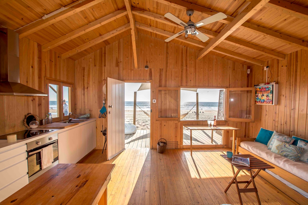 PARTIES ARE NOT ALLOWED This charming seaside Cabana is located directly on Praia da Mata, one of the most beloved beaches of Lisbon's famous Costa da Caparica, a gorgeous stretch of white sand beach dotted with seafood restaurants, surf schools and candy-colored cottages. Nestled in the dunes, Cabana Branca is big enough for friends or families to share, a stone's throw from the ocean's edge yet completely hidden from tourists. Caution: you need to bring your drinking water.