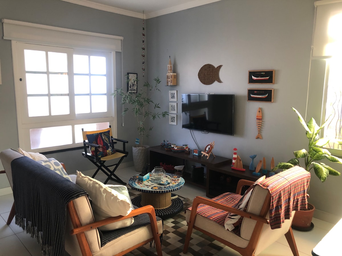 Well-located apartment, with constant sea breeze, one block from the beach, behind the "Passarela do Caranguejo" and less than 10 minutes from the airport. It has three bedrooms -one suite, two have air conditioning. All bedrooms have ceiling fans. The apartment is equipped with a TV, Wi-Fi, workspace, washing machine, and a full kitchen. The 5-story condominium has an elevator, a swimming pool, and a barbecue area. Convenience, comfort, and leisure with excellent value for money!