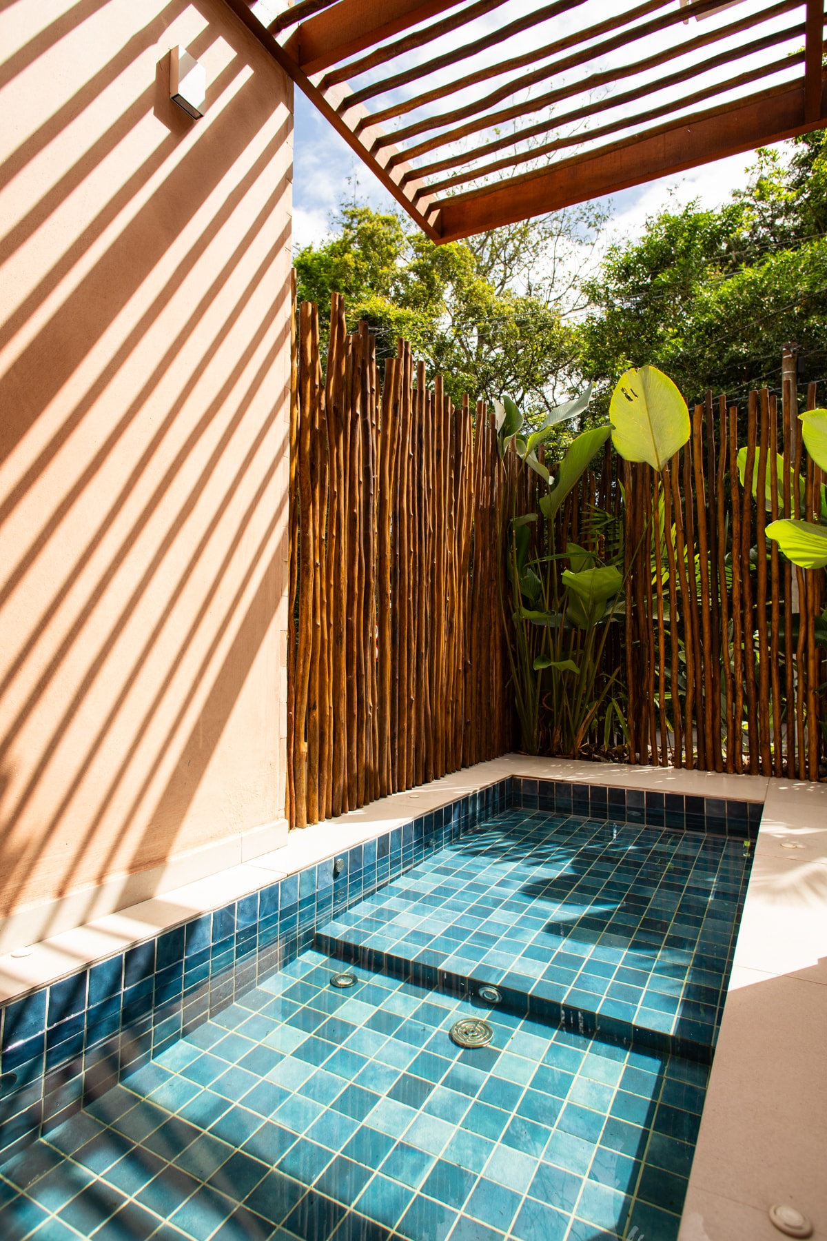A bungalow built artistically in every detail... a bathtub open to the woods with a glass ceiling gives the feeling of being immersed in nature, with a centenary fig tree in front and many birds... intimate and welcoming in connection with Nature, in contact with this reserve area of the Atlantic Forest. The other hot shower is on the deck open to the woods and is delightful day or night, with a starry sky and moonlight.