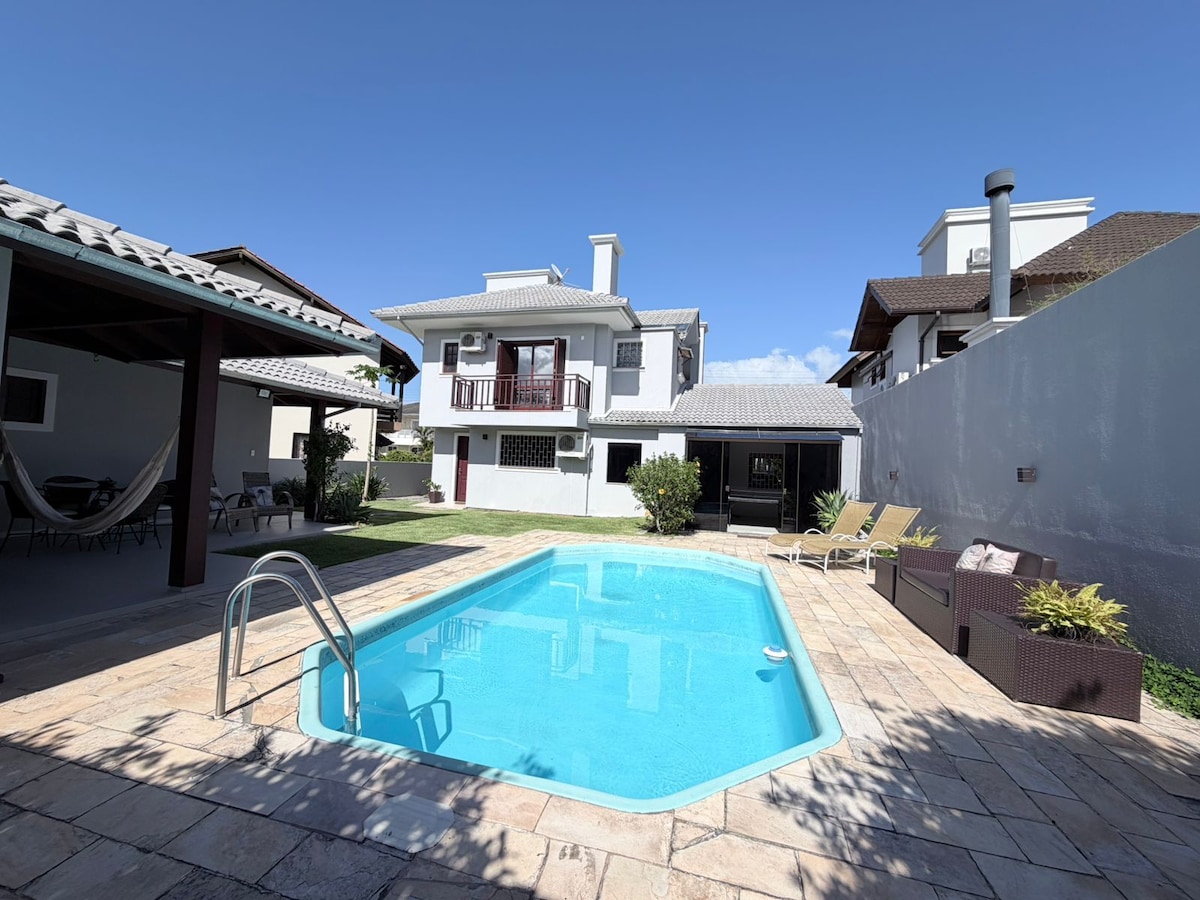 Excelente casa com acesso direto para praia! São 4 dormitórios, sendo 3 suítes, varanda e churrasqueira interligados ao jardim e a piscina. Localizada num condomínio com apenas 3 residências,em uma rua tranquila, com fácil acesso as melhores praias do Norte da Ilha! A cinco minutos de Jurerê. Condomínio exclusivo com caseiro. A piscina e amplo gramado, são compartilhados apenas pelas três residências. Aconchegante,com referenciais mediterrâneos, aqui você pode relaxar com pé na areia!