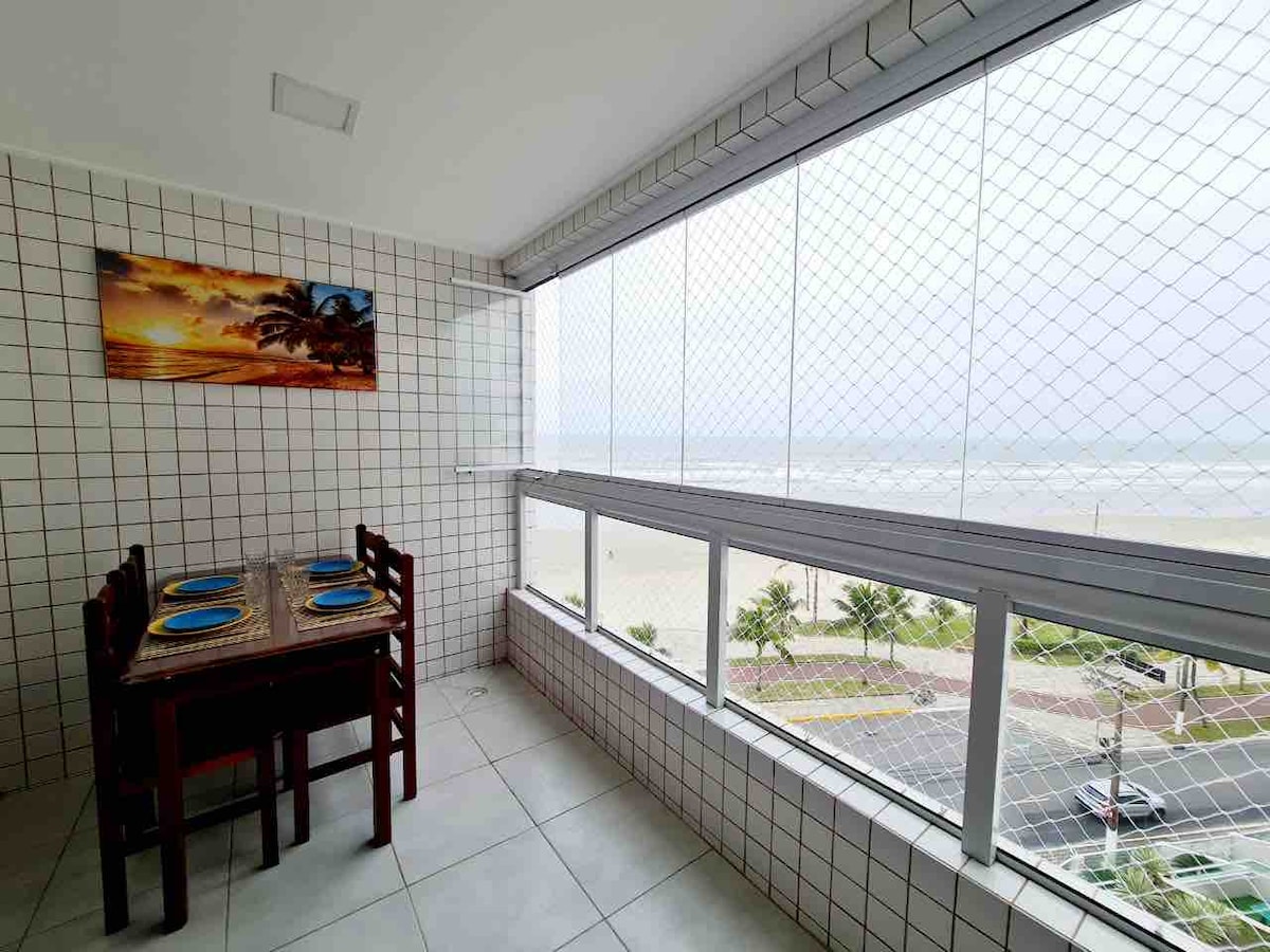 Beachfront apartment with a beautiful view of the entire beach. Large, spacious, airy, and naturally lit. Located on the tenth (10th) floor, full front balcony, fully screened and furnished. It has two parking spaces and two access elevators. Easy access to the beach and local shops. Guilhermina Beach in Praia Grande, south coast of SP. *Basic bed, table and bath items provided, as well as beach chairs and umbrella.