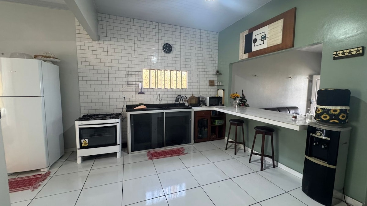 Relax with the whole family in this quiet accommodation, close to restaurants, supermarkets, the Maçarico waterfront and much more. Quiet neighborhood with a caretaker living in front of the accommodation for better support. Accommodations with full connectivity features such as Wi-Fi, smart TVs, air conditioning, full kitchen, coffee makers, living area with sofas, hammock and dining table.