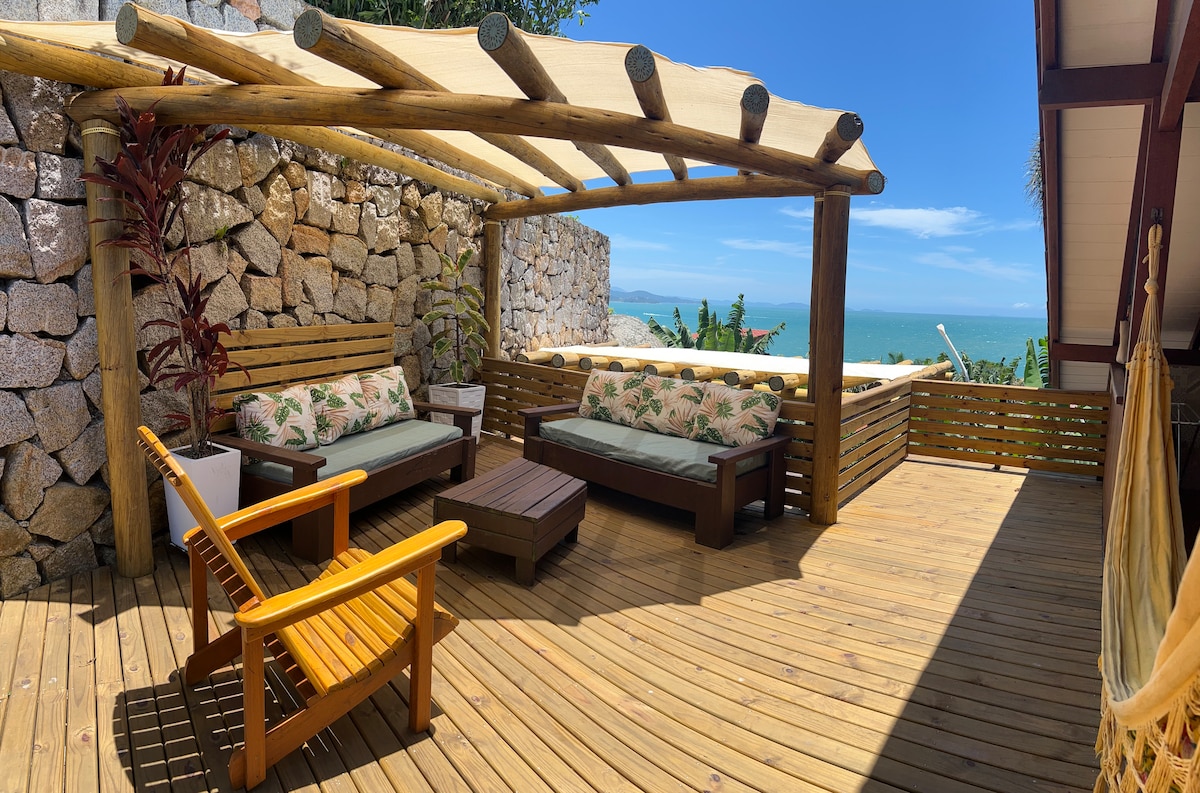Cabana estilo TreeHouse, vista panorâmica, cercado por natureza é o diferencial desta exclusiva cabana! Com uma varanda acima da linha das arvores voce tera uma vista paradisíaca do oceano, mata nativa, canal cristalina e um vilarejo simpático de pescadores. Não a acesso a carros no morro, tornando se um lugar perfeito para amantes da natureza, aventureiros e quem ama praticar trilhas e esportes aquáticos. Localizado 15 minutos a pé da praia, estacionamentos, restaurantes e transporte público.