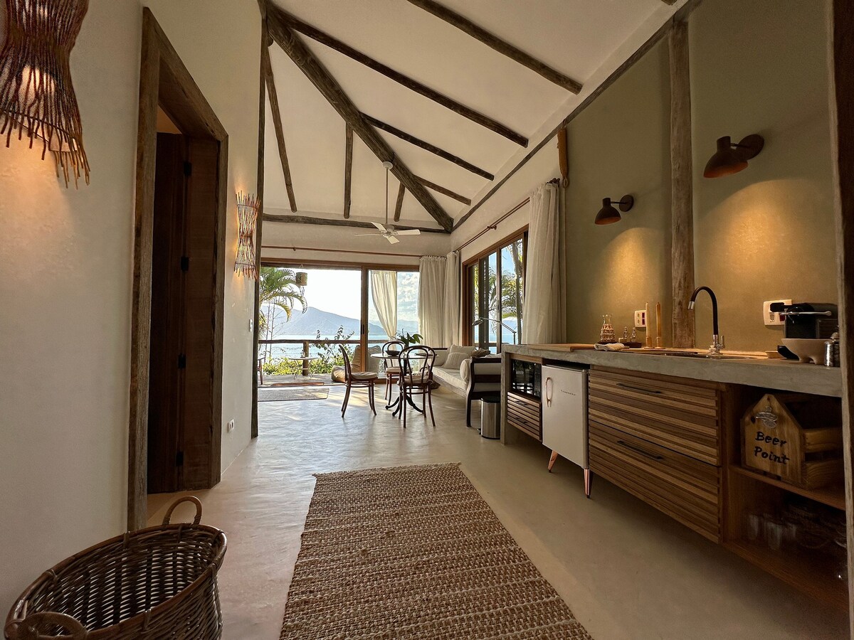 Spacious furnished apartment, with kitchen, air-conditioning and Wi-Fi. Perfect isolation! Exclusive path to the beach. Breathtaking views of the sea, islands and surrounding forest. Only three cabins on a huge property, right on the sand of Camburizinho Beach, in the middle of a private Atlantic Forest reserve, supplied by spring water and with easy access. Privacy, comfort and security. WEEKEND WITH FREE CHECK-OUT ON SUNDAY!