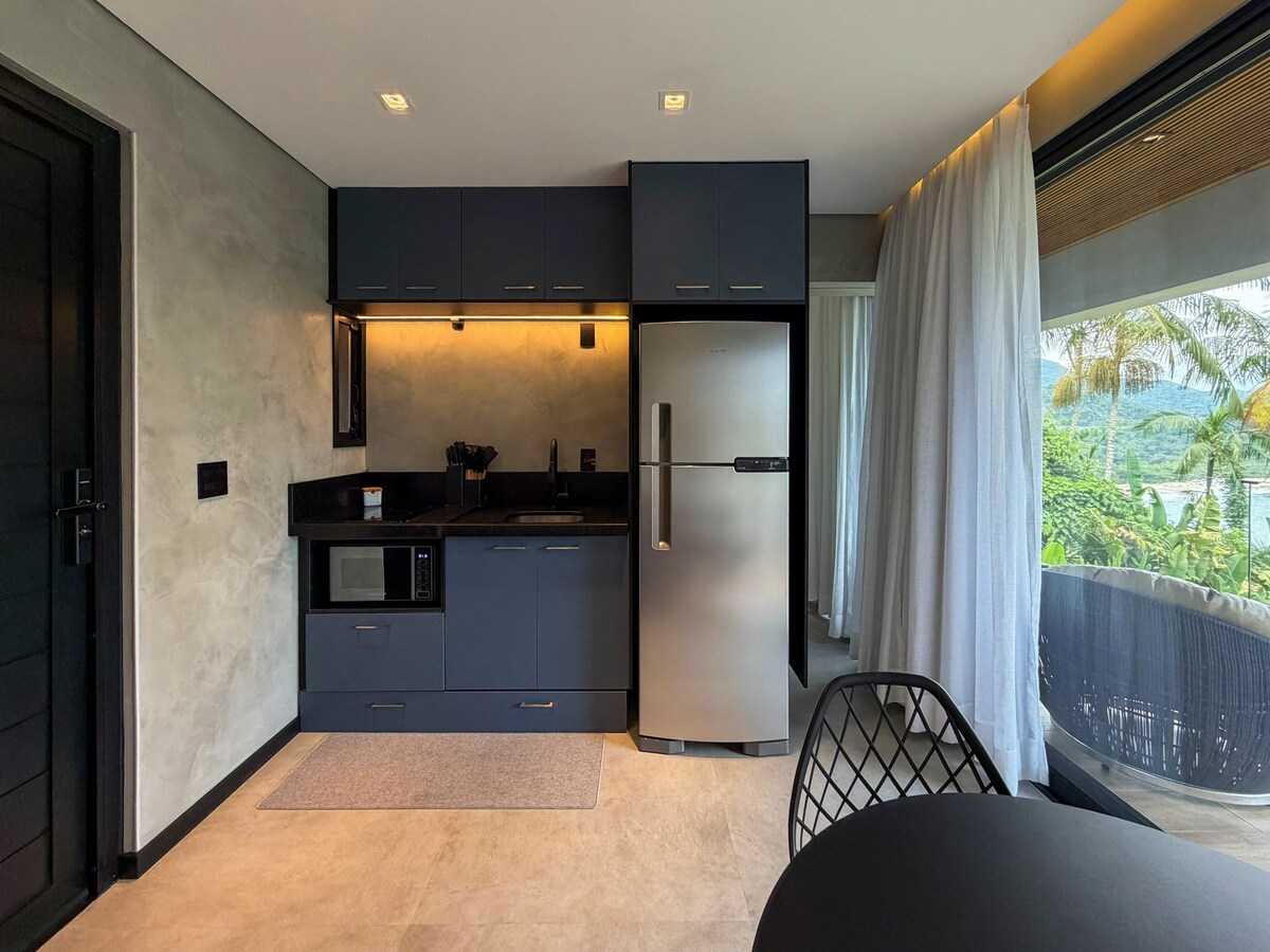ESTÚDIOS ITAPYTANGA: a distinctive experience on the northern coast of São Paulo! Blue Studio Charming studio located in one of the most beautiful views of Ubatuba, overlooking the sea of Praia Vermelha do Centro. 500 meters from Praia Vermelha, the space accommodates up to 4 people: queen size bed, double sofa bed, equipped kitchen, microwave oven, ceiling fans, Wi-Fi, fiber optic TV with more than 70 channels and a wonderful balcony where, relaxing in one of the hammocks, you can contemplate the forest and the sea.
