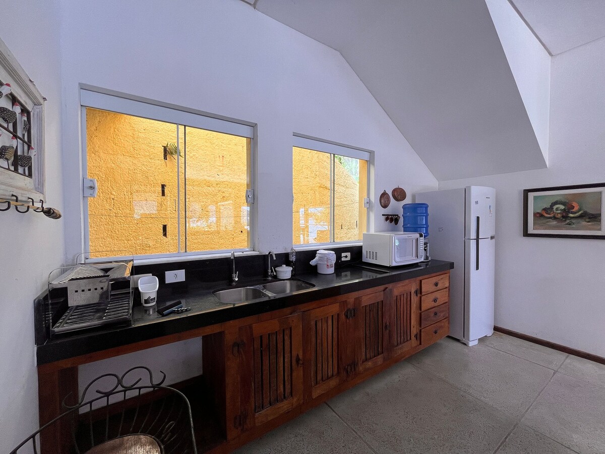 Rustic house on Vermelha Beach in the Center, 3 minutes from the sea, on a quiet, dead-end street. Sunny and surrounded by a tropical garden, located in the middle of the Atlantic Forest. There are 3 bedrooms, 1 of which is a suite. Living room integrated with the kitchen. Kitchen with refrigerator, stove, blender, pots, baking sheets and other utensils needed to prepare meals. There is 350mb fiber optic internet. 43" Smart TV It is necessary to bring sheets, towels and other items for personal use. There are pillows and blankets.