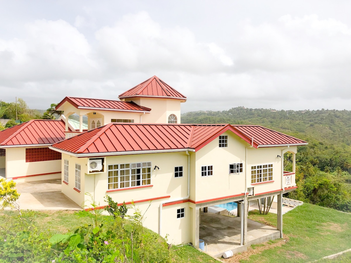 This is our little paradise; a lovely colonial country home tucked away on 1 acre of manicured garden around an amazing infinity salt pool, overlooking the Atlantic ocean. Perfect for people who love nature hiking and tranquility . We are mostly surrounded by rain forest & farms which makes it very quiet and peaceful. A lot of hiking trails nearby. There is AC available in 4 of the 5 bedrooms and ceiling fans in all rooms to help make your stay comfortable.