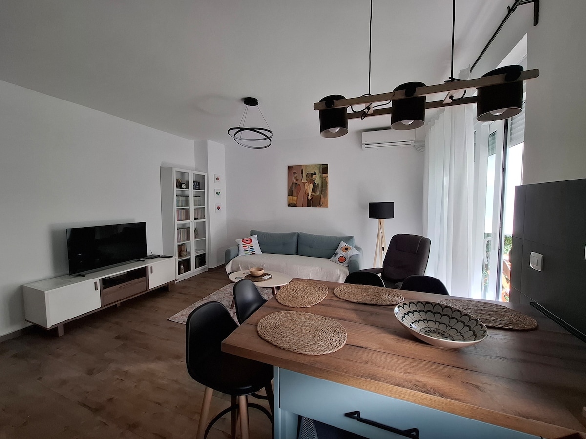 Enjoy a stylish experience at this centrally-located place. Furnished and equipped apartment with brand new high quality furniture/appliances. Located on first floor of a small residential building of 4 apartments in total, only 50m away from the sea and 200m away from Kotor Old Town. One bedroom apartment of 60m2 consists of living room, kitchen and dining area, 1 bedroom, bathroom and hallway. Garden and parking space at disposal.