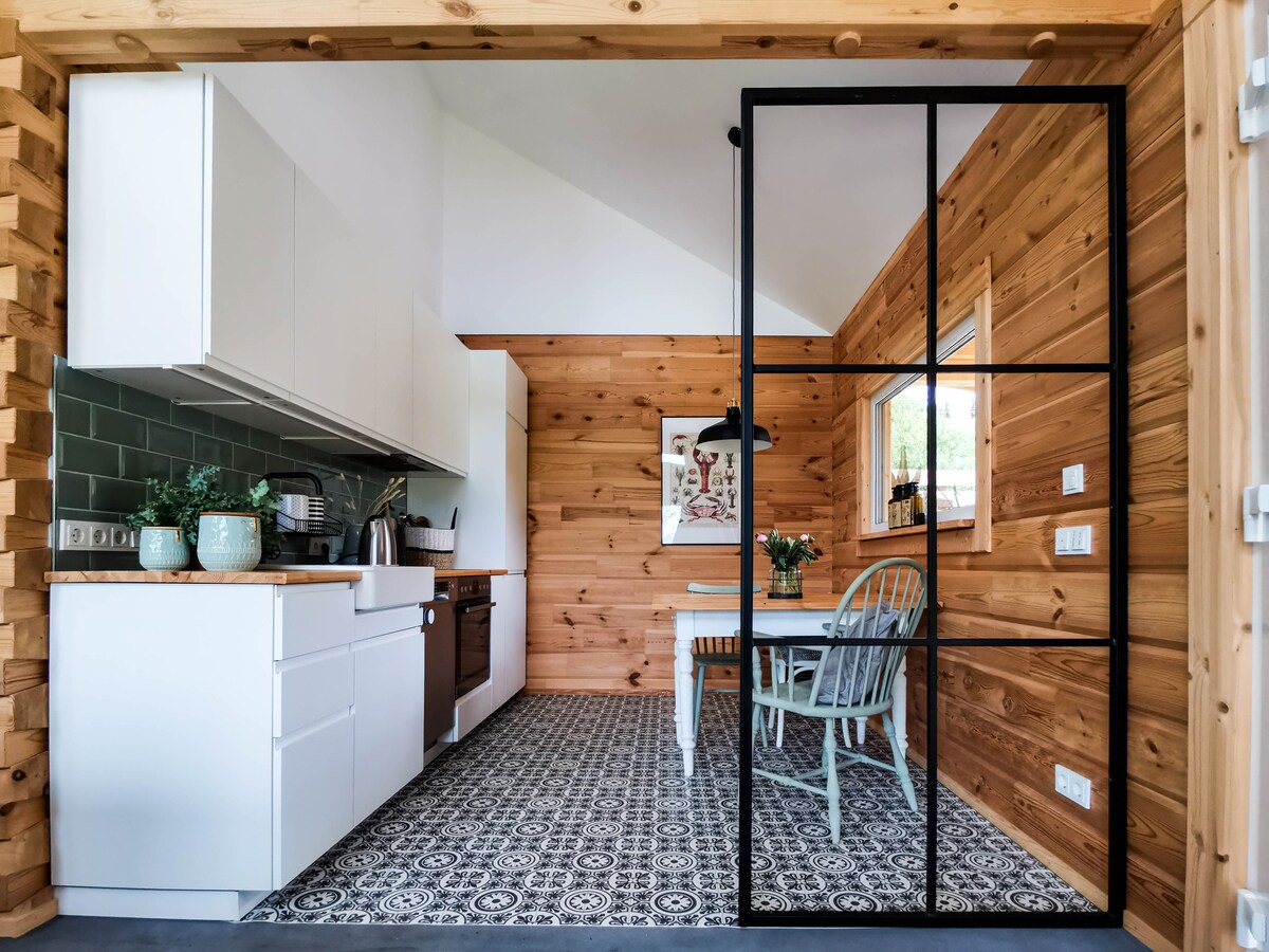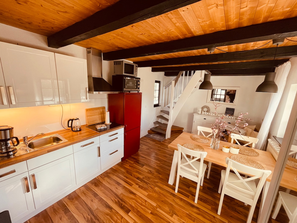 The charming little Kate offers space for 2 people on 36 square meters of living space. Lovingly designed historical building on former half-timbered farm. Ground floor: living room, open kitchen and shower room. Pointed floor: Bedroom for two persons and gallery with another sleeping place. Wood-burning stove for coziness and romance. Terrace and seating area in garden. Close to Neustadt i.H. and Grömitz. Only 3 km to beach. Leisure activities in Lübeck Bay and Holstein Switzerland.