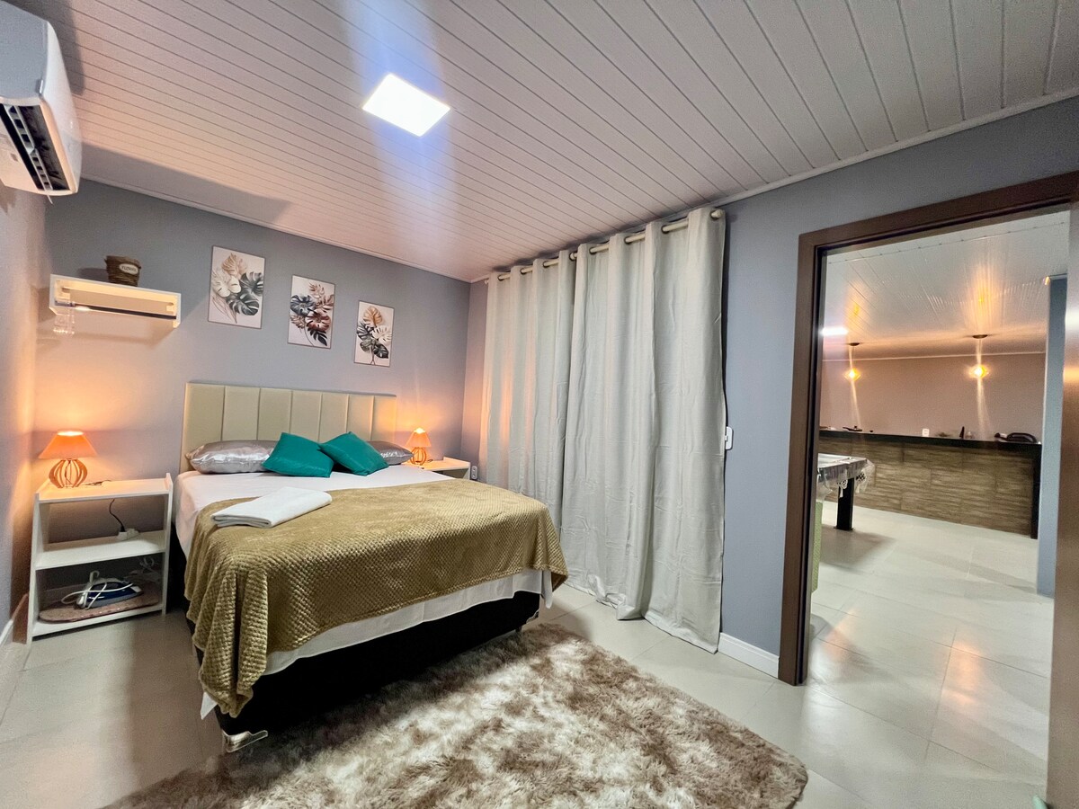 Enjoy an exclusive and comfortable space, perfect for couples or travelers looking for practicality and well-being in Manaus. Our property is situated in a horizontal residential area, with no stairs, ensuring total accessibility and convenience. It has an internal garage with an electronic gate. Privileged Location: • 19 min from Eduardo Gomes International Airport • 16 min from Manauara Mall • 20 min from the Amazon Arena Comfort, convenience and great location – book your stay now!