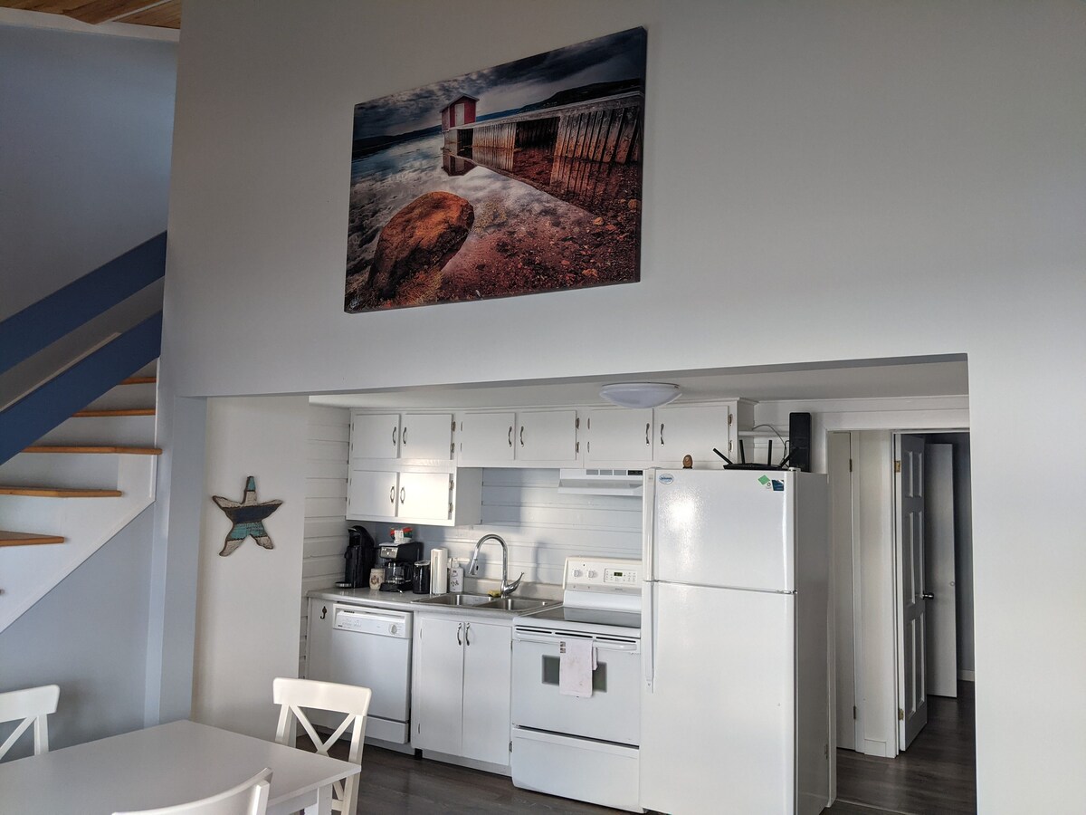 This secluded waterfront Chalet has a vaulted ceiling with a pine interior, and drywall in the bedrooms. There is a Jacuzzi tub and a propane fireplace. The 32 inch flat screen smart TV will normally pick up by antenna local CBC and regional CTV, Netflix YouTube and other apps with FibreOptic speeds up to 100 Mbps, play DVD/CD, and other video from your own devices via a provided HDMI cord. We are located 15 minutes or half way between historic Charlottetown and the attractions of Cavendish.