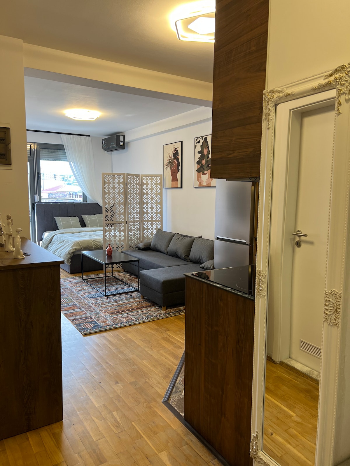 Stay in this modern, stylish apartment in the heart of Prishtina. Perfect for couples, it features a glass-enclosed bathroom, a separate living room, and a fully equipped kitchen. Wake up to beautiful views from the comfortable queen-size bed and enjoy the bright, elegant space with high-end furnishings. Large windows create a peaceful and inviting atmosphere. Located in Prishtina’s vibrant center, you’re steps from top restaurants, cafes, and attractions while enjoying a private retreat.