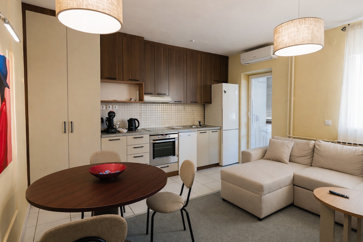 Discover our stylish haven – a cozy apartment with modern decor, ample natural light, and comfy furnishings. Enjoy a fully equipped kitchen, a spacious living area, and a serene bedroom with a luxurious king-size bed. Note, the bathroom is compact but efficient. Step onto the balcony for a captivating street view. Conveniently located near popular attractions, our apartment is your perfect retreat, balancing comfort with contemporary charm for a memorable stay.