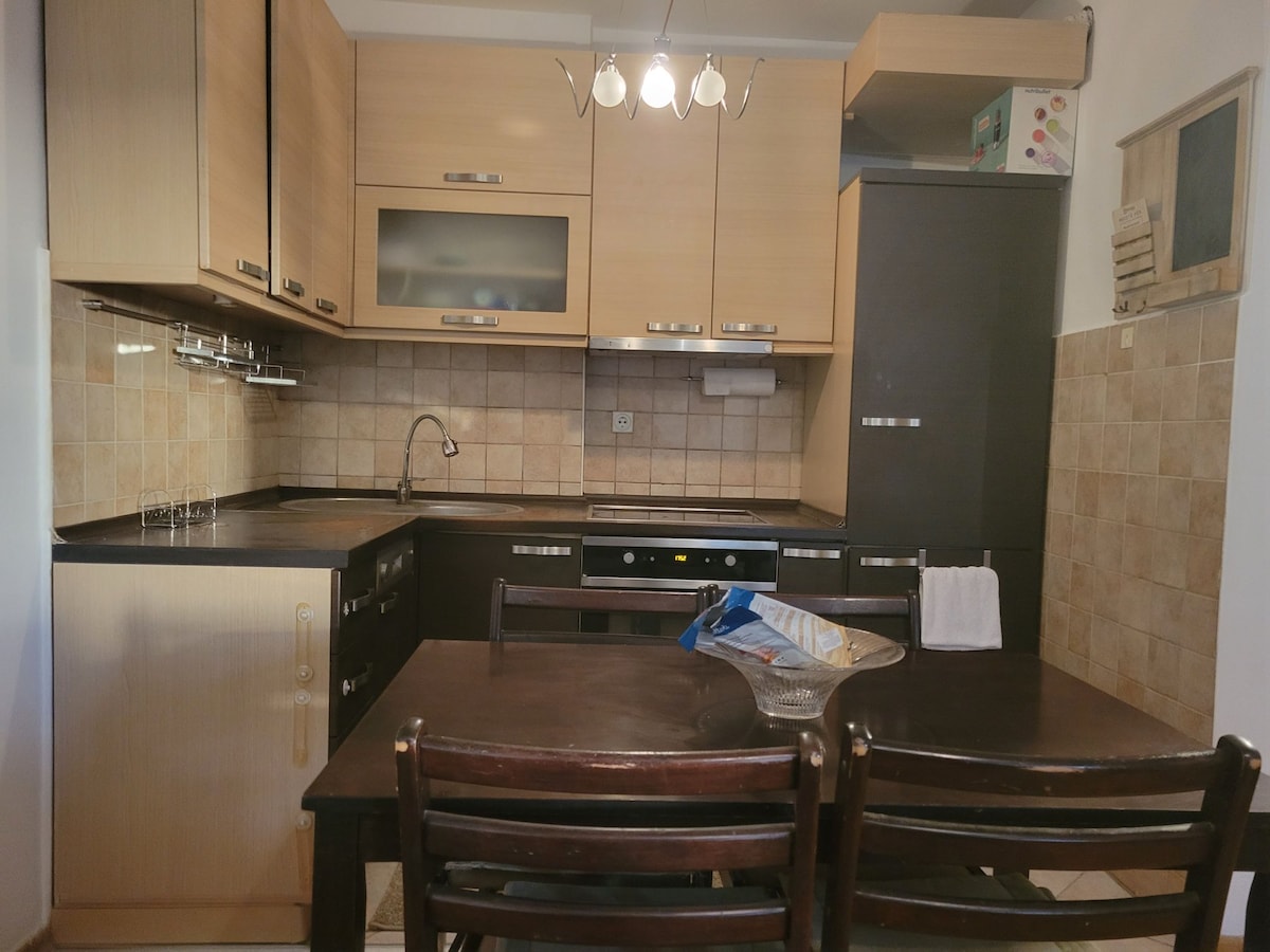 Welcome to our cozy and comfortable apartment located in the center of the city. It features a work space for those who need to stay productive while on the go. Relax in the evenings with access to Netflix on the flat screen TV. The bathroom is clean and fully equipped with all the essentials. The kitchen is fully equipped, allowing you to cook and dine in. Enjoy the beautiful views from the two balconies. Book now for a comfortable and convenient stay!