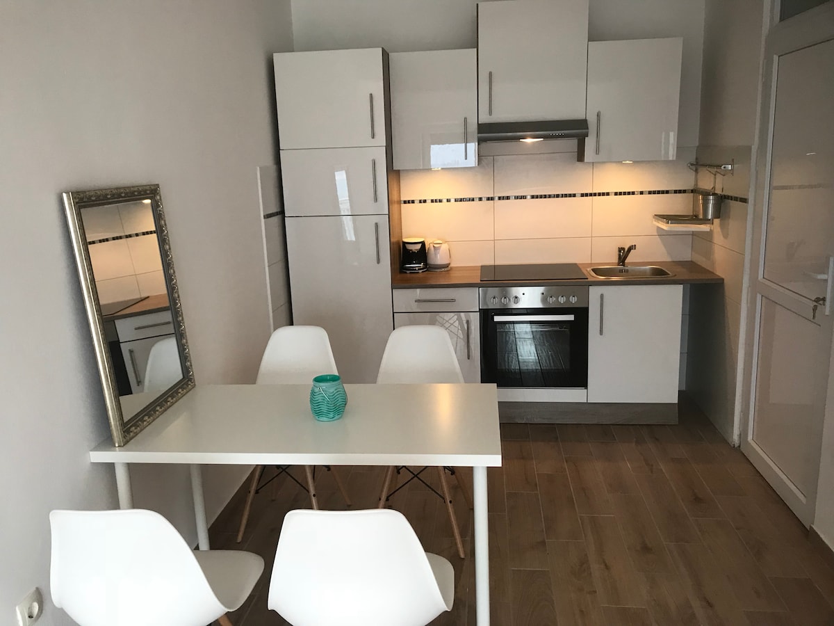 Perched on steep rocks, 30m above the sea level, this idyllic studio is a perfect getaway for a much needed vacation. Surrounded by a vegetation reserve of Dubrava-Hanzine, it offers a luxurious experience - the sweeping views of the Pag Bay and the mountain range of Velebit, for one. Beach Rozin Bok 50m from the apartment. Parking, A/C, outside grill, and outside solar shower included. SUP and kayak are available during the stay in the apartment.
