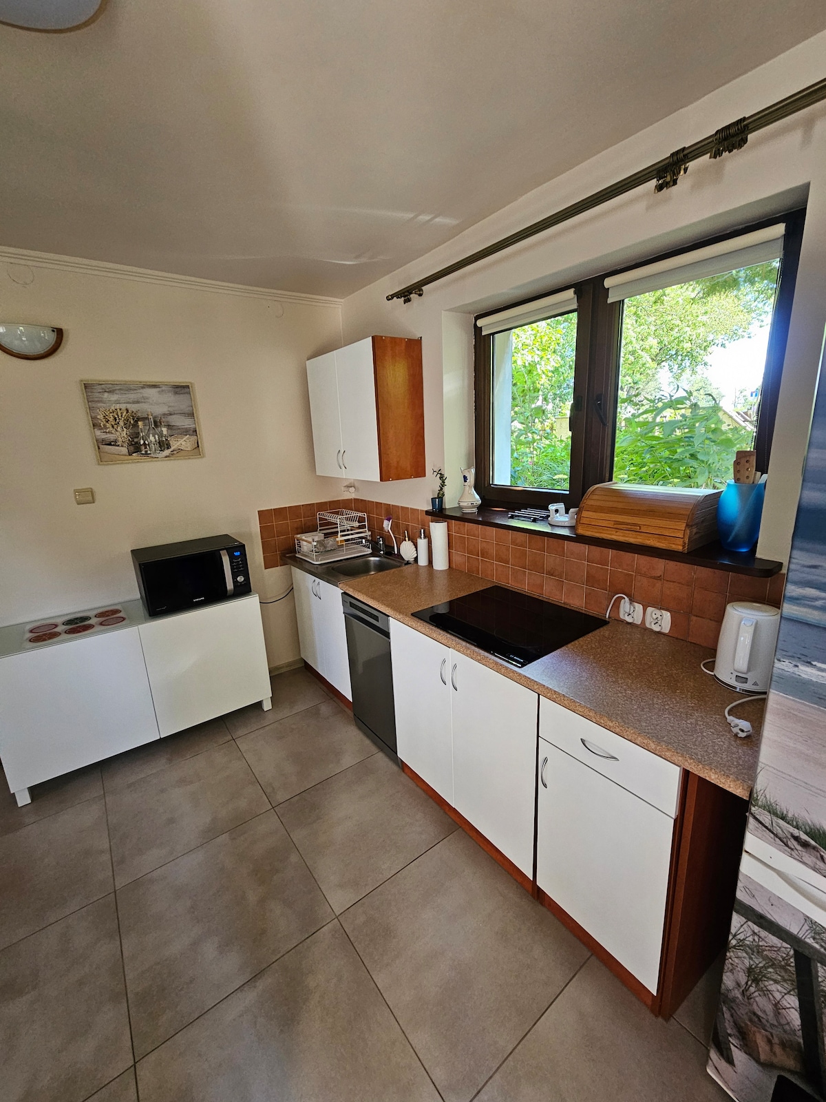 A cozy, two-room apartment (part of the house) with a separate entrance. Both rooms have beds, and a baby cot can be added. The house is located on a private property with plenty of greenery - you can have a barbecue. Excellent access - both by car and public transport - 15 minutes to Gdynia. The apartment is fully equipped and can comfortably accommodate four people. The area is perfect for cycling trips - there are many bike routes. We recommend it for holidays in the Tri-City! :)
