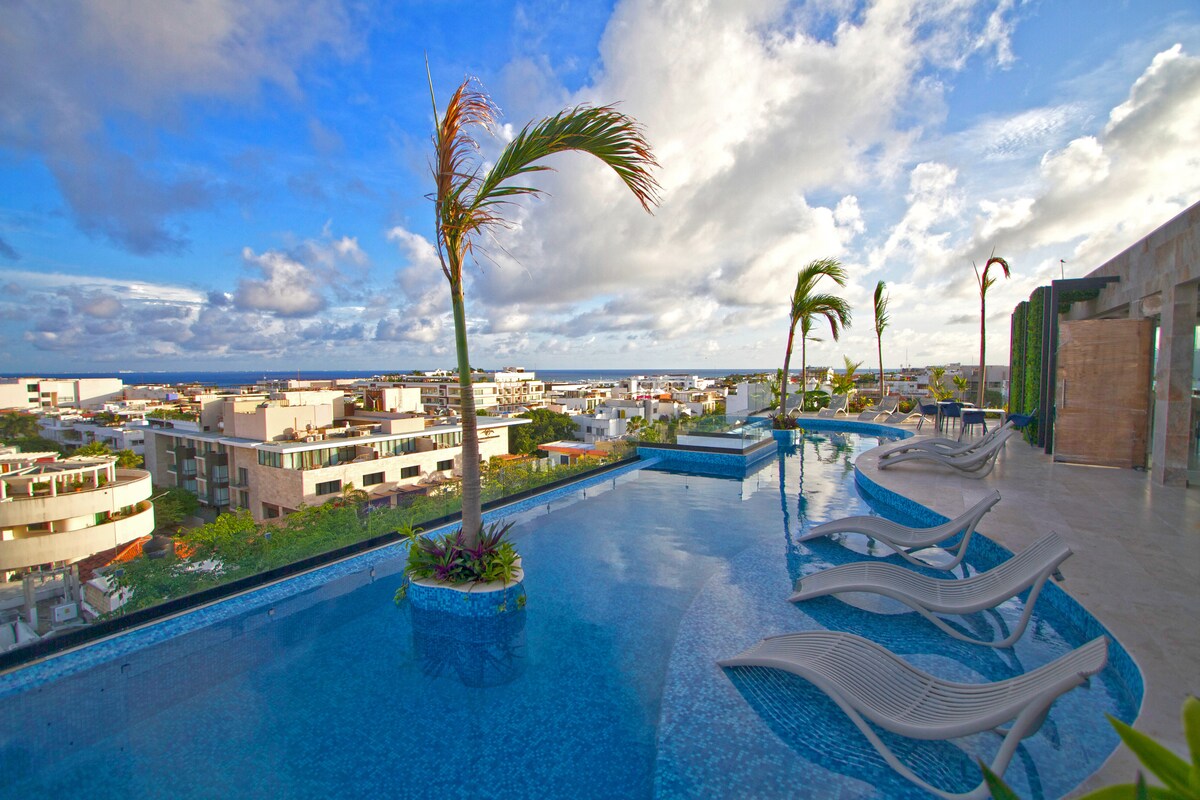 Welcome to our cozy studio in a sparkling new condo, right next to the lively 5th Avenue. It's got everything you need to feel at home and make your stay super comfortable. Plus, you can't beat the views of the Caribbean Sea from our rooftop pool. It's a perfect spot for relaxing and soaking up the sun. Come and enjoy a little slice of paradise with us!