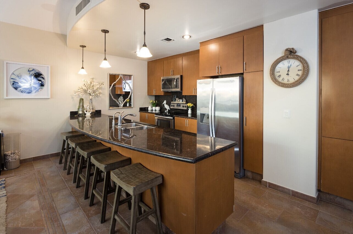 Our Vacation Home at Sonoran Sky Resort is closest to the beach, family-friendly activities, and restaurants and dining. You’ll love our place because of the outdoors space, Sunset Views, closest to the beach on all of what Sandy Beach has to offer. The beds are super comfy, the kitchen is loaded and the Condo is located on the 3rd Floor which is easy access to the resort Spa, grilling area and easy walk down to the beach.