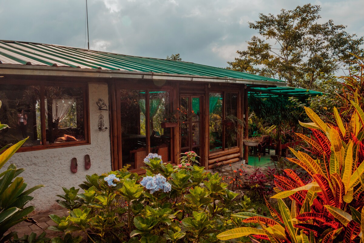 Relax with the whole family in this peaceful place surrounded by nature, with a warm climate and wonderful common areas, the perfect place to rest from the noise of the city. Located in an area with a humid tropical climate whose temperature fluctuates between 21 to 30 degrees Celsius, it is an ideal place for birdwatching and other fauna such as amphibians, insects, etc. NOTE: The kitchen and shower are electric, so they may not be available due to power outages.