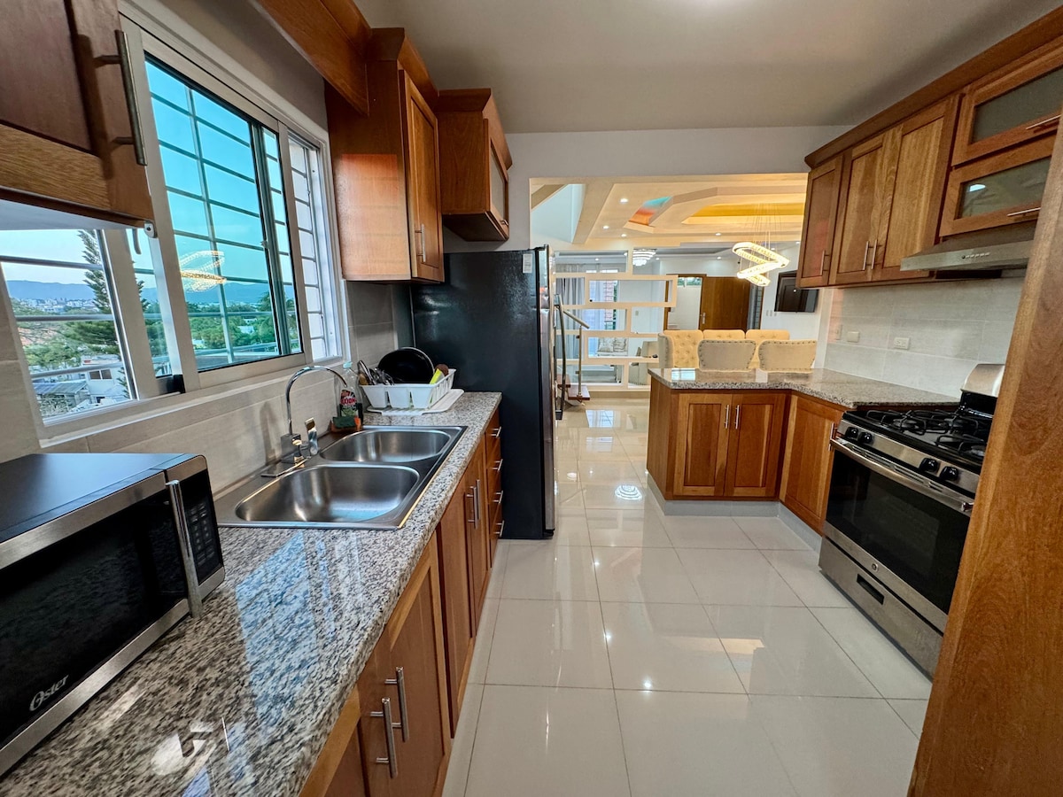 This is the perfect place to stay with your family or work team and enjoy the comfort of being in your sweet home! We have all of the following to offer you: * Perfect Location * 300 meters of space * More than 900 meters throughout the property * Spacious and comfortable rooms * Drinking water filter * A large garden * Large backyard * 10 Minutes from Cibao International Airport * 300 meters from HOMS * Excellent Natural Park for walking open to the public
