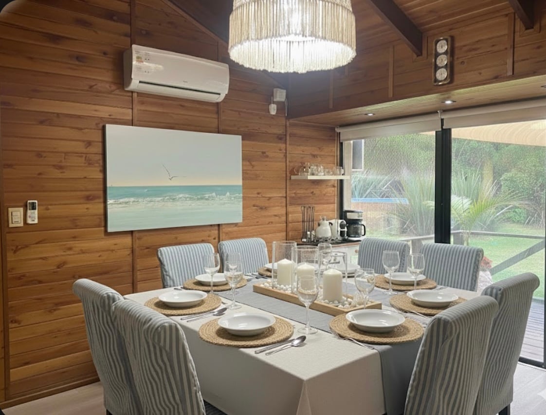 Cozy cabin in the woods of Punta Ballena. Ideal to get away and relax in a natural and very peaceful setting. Steps away from the Lussich Arboretum, ideal for hikes, rides, and enjoying a coffee with a delicious La Checa cake. Minutes from Solanas, Tío Tom, Las Grutas, and Chihuahua beaches. We have a set of sun loungers and a parasol with UV protection. In winter we'll wait for you with the fire lit. The house is fully furnished to make you feel at home.