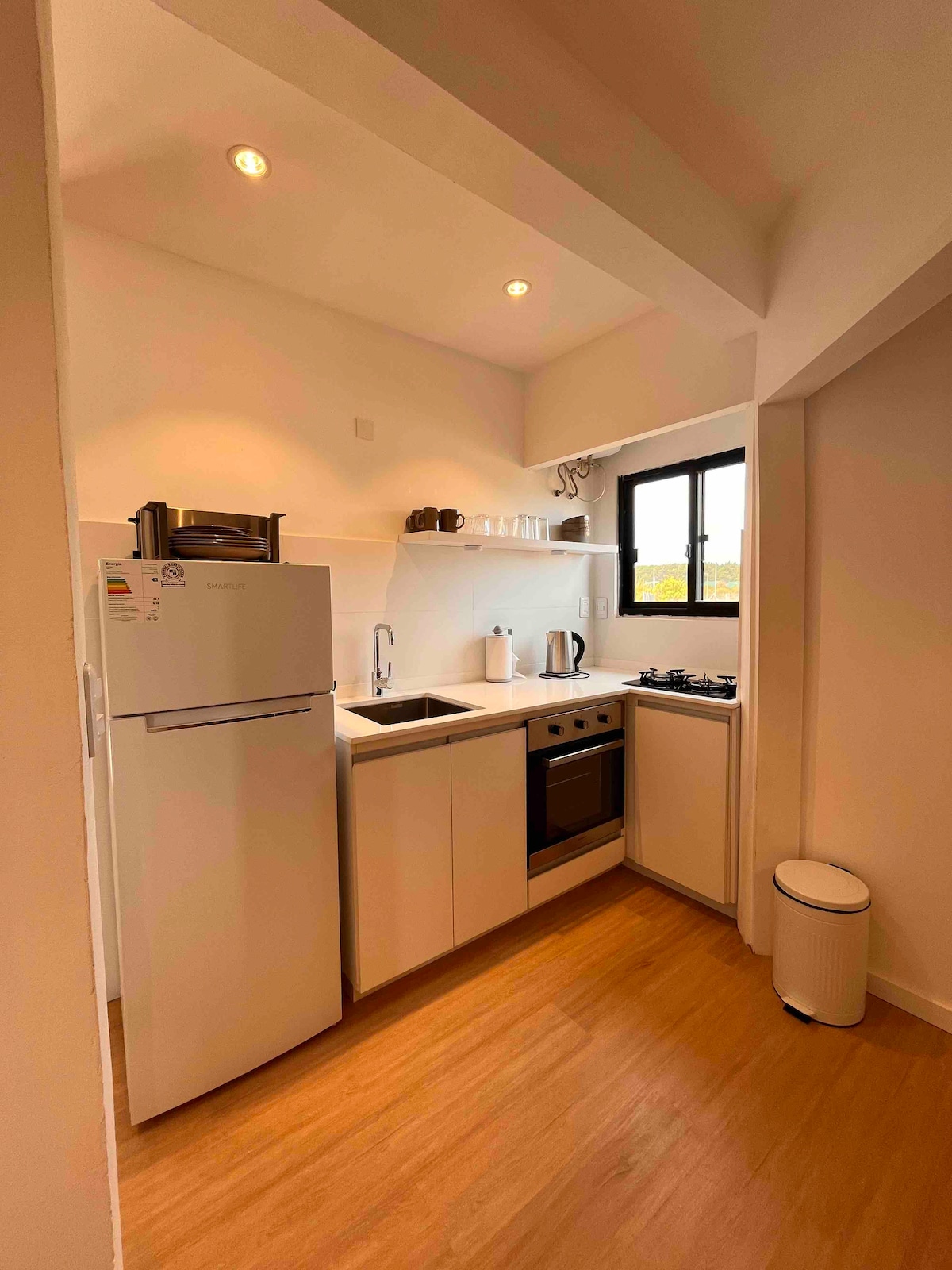 Spectacular apartment in Punta Ballena on the seafront. Next to Casa Pueblo, house and museum of the artist Carlos Páez Vilaró. It has 2 en-suite bedrooms, an integrated kitchen and dining room, a living room and a large terrace. Air conditioning and automatic blinds. Sheets, towels, beach chairs, and umbrella included. Optional maid service at an extra cost. Optional bicycles at an additional cost.