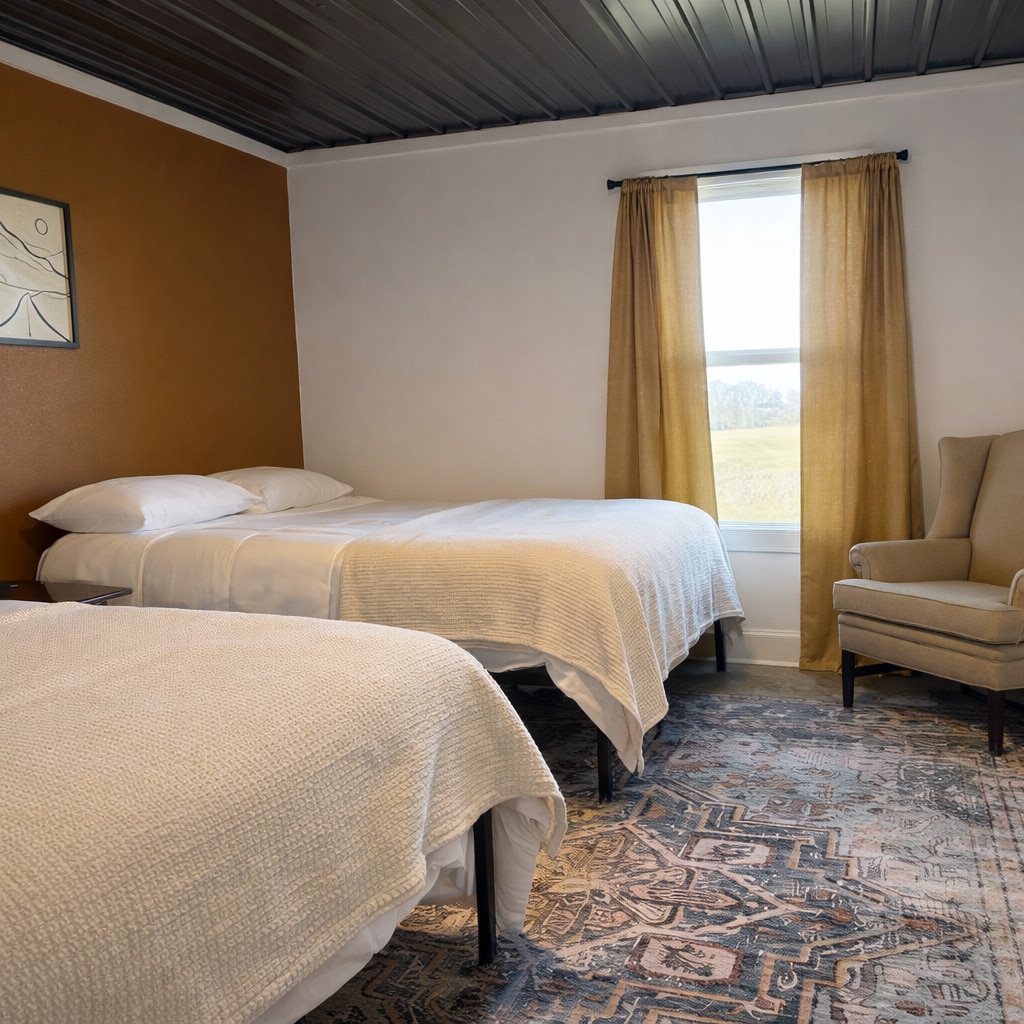 Apartment 8 at Lawrie Farmstead Lodge offers a comfortable stay with plenty of space to relax after a long day outdoors. Featuring two queen beds and 1 twin, this unit is perfect for hunters, couples, or travelers who want extra room to stretch out.