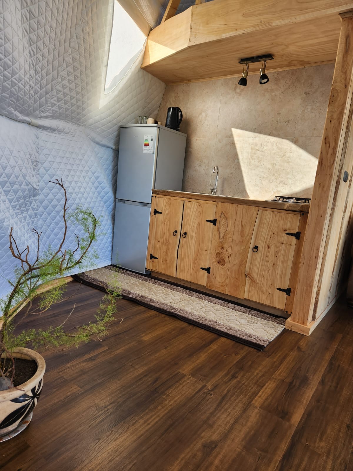 With its fairytale-inspired architecture, our solar-powered cabin is located on the heights of Ensenada, on the slopes of the Calbuco volcano. We are offering tourists and travelers, high quality, fully hand-made, accommodation. somewhere to relax and contemplate, far away from consumer society. It is also the ideal place to rethink one’s priorities and experiment, for a given time, what is "going back to the essential".
