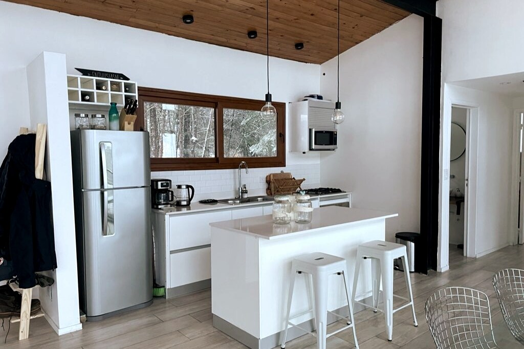 A 65 sq. meter house built and decorated with details that will make your stay a pleasure from the moment you enter the grounds. It is located on a plot with 2 houses and 2 friendly and quiet dogs. This special 65 sq. meter Puerto Varas house was designed with a large common space that integrates the kitchen, living room, and terrace designed especially to enjoy family gatherings and connect with the environment. Located 5-10 minutes by car from downtown Puerto Varas and the lake.