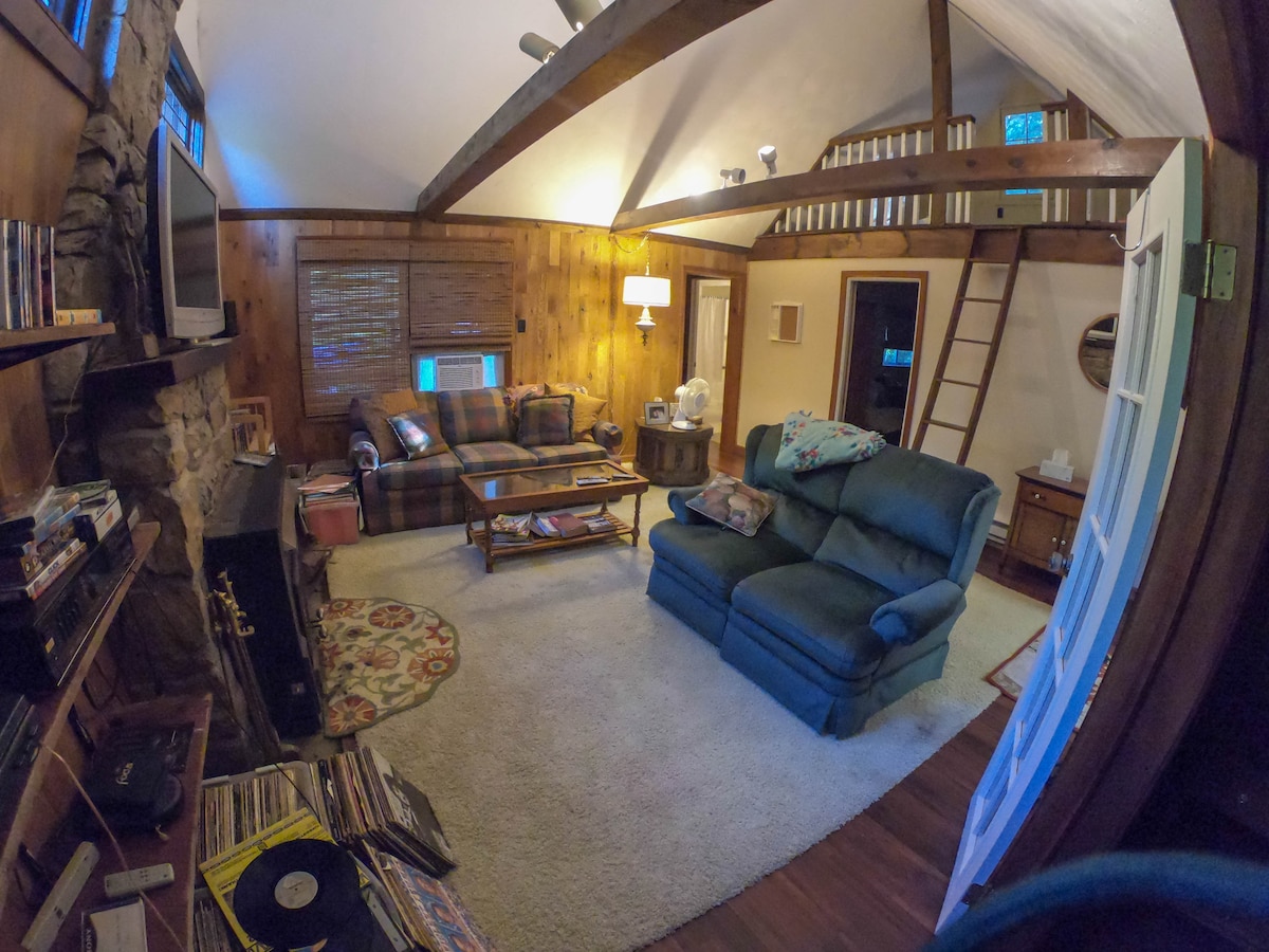 STARLINK 150-200mbps, CENTRAL AIR PRIVATE Cozy vintage charm cottage/country setting located between ERIE, MEADVILLE, CONNEAUT LAKE, PA. Vacationers, authors, fishermen welcome. Within driving distance to WALNUT/ELK CREEK, CONNEAUT, PYMATUNING, ERIE and one mile to state game lands. Abundant wildlife. Walking trails in the woods and enjoy quiet surroundings around a campfire, STARLINK internet, stream TV, Hulu, Roku. WEEKLY/MONTHLY stays are discounted. Blueberry muffins at check-in.