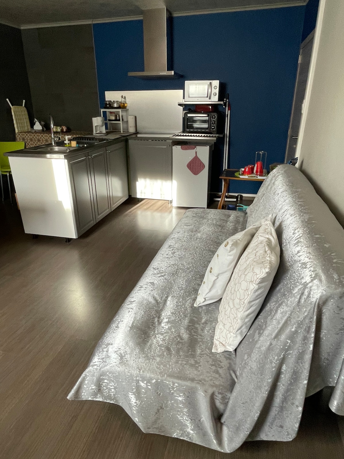 Charming and warm, this small accommodation located in the heart of the city of Mons (a stone's throw from the Grand Place) will take care of you during your stay. This one is on the ground floor of a building consisting of three units. It has a king size bed (180/200). You will find all the comforts (dolce gusto, electric kettle, 2-in-1 microwave/grill, electric induction cooktop, Wi-Fi, Android TV stick) the bathroom consists of a shower, sink and toilet.