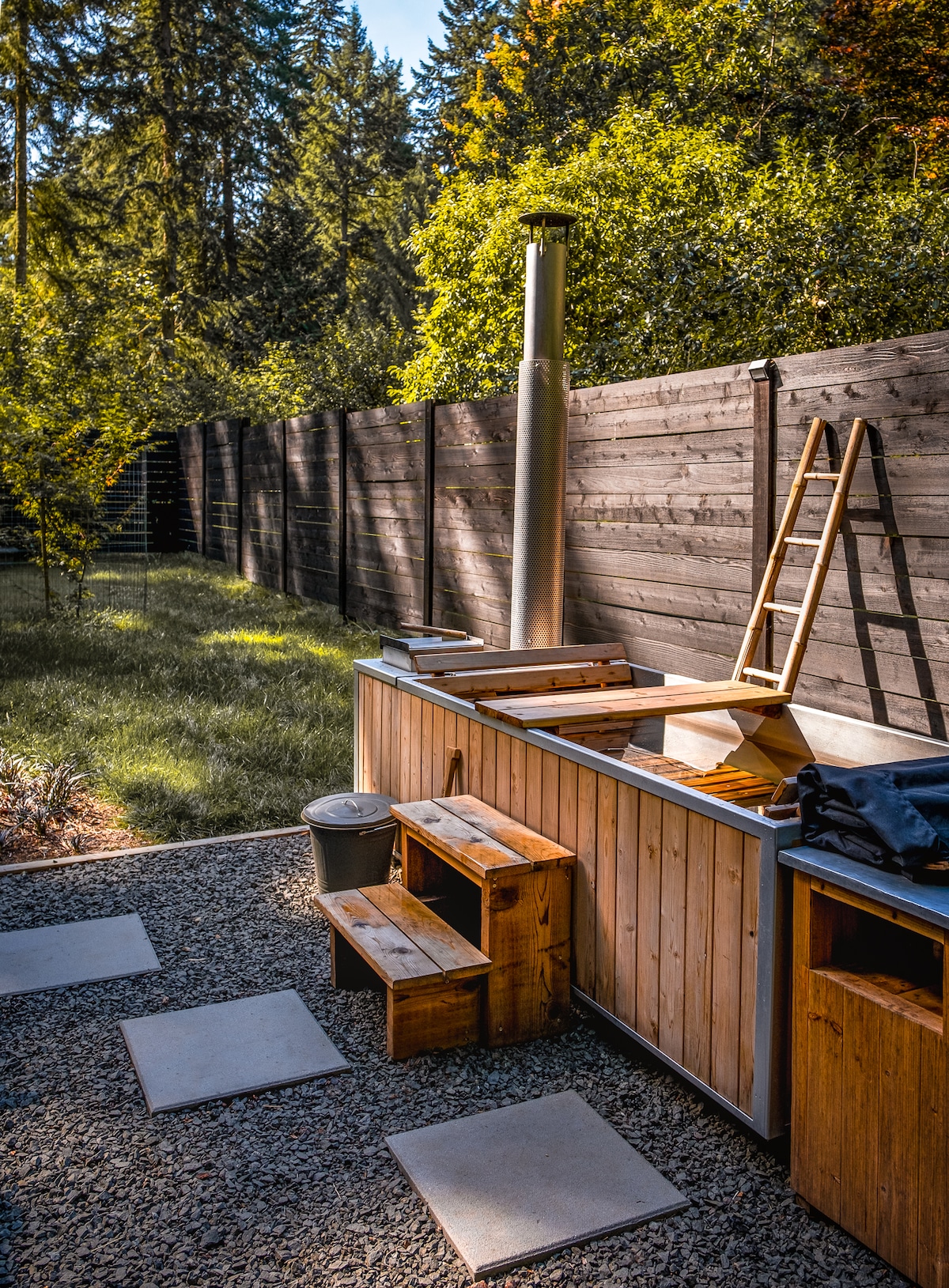 Experience the natural beauty of Vashon Island from a Walden-inspired Tiny cabin tucked into four acres of lush PNW forest. Just a short ferry ride across the Salish Sea from Seattle or Tacoma, The Wolf Den is the perfect retreat for couples or solo travelers seeking a restorative getaway. After exploring the island's many pristine trails, beaches, and local attractions, unwind in the wood-fired soaking tub and let the calming rhythm of island life rejuvenate you.