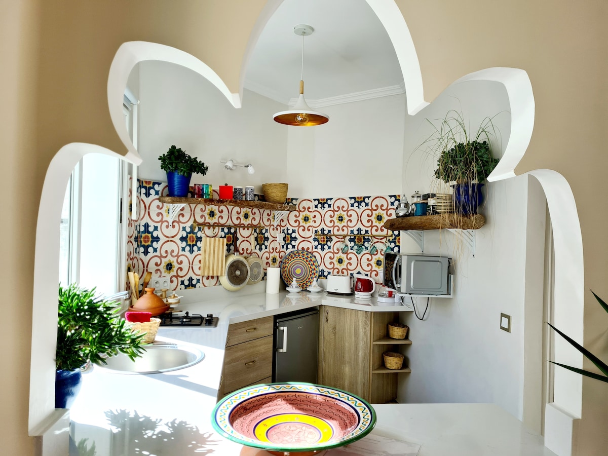 You would be welcome and you would feel at home in my studio designed with care and attention. Fully-equipped kitchen. Linens in abundance. Sparkling clean. The accommodation is on the 4th floor of a beautiful art-deco building with a common terrace. The accommodation is strategically located for its proximity to various amenities, including train station, tram, airport shuttle, city center, medina, royal palace, museum, Kasbah des Oudayas, Hassan Tower...