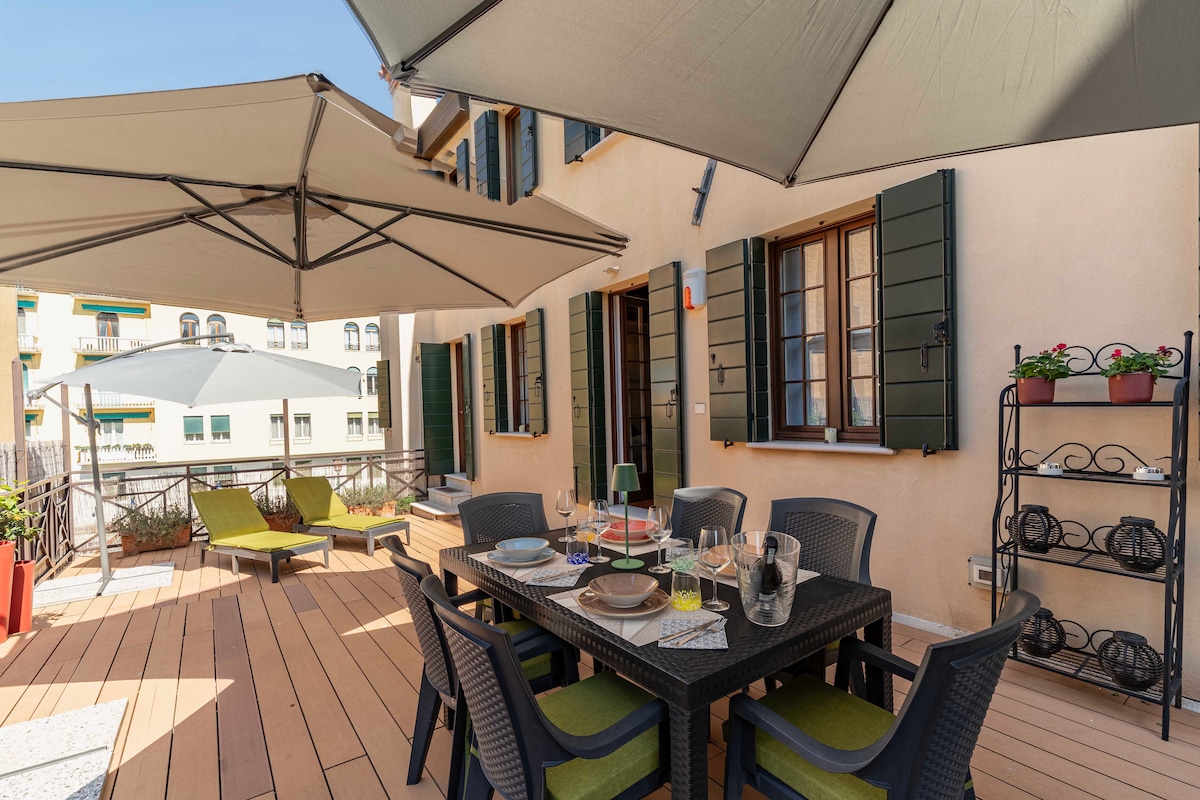 6525 offers the best lofts in Venice, just renovated to guarantee maximum luxury and comfort to our guests. Get off the boat and get into the house will be possible thanks to the gorgeous private terrace that offers space to have dinner or a cocktail watching the sunset. You can reach Rialto or San Marco in just 5/10 minutes and enjoy the most lively district of Venice, with many shops and restaurants nearby. Book now to get into the true Venetian experience! MUNICIPALITY REGISTRATION CODE: M0270427215 (regular and authorized structure) The loft "Vittorio" consists of a large living room, 3 bedrooms, 2 complete bathrooms and a beautiful private bank. The rooms guarantee maximum comfort, they are bright and spacious. The first has a very large double bed and the other two very comfortable single beds. You can even match the single beds to have a large double bed. You'll find beautiful and spacious bathrooms, with a large shower to ensure maximum relaxation. The living room is the brightest room, with a comfortable sofa bed, a new smart TV and a well-equipped kitchen. You will have also access to the private terrace on canal. Both in bedrooms and in living room you'll find curtains (they are electric, inside the glasses). If you want, it can become pitch dark. It's ground floor flat. You can easily access with your luggages, from the private bank or from the door on the street ("calle"). No keys! You will have your own PIN (we will send you 24 hours before arrival), so everyone can enter easily. You can leave your luggage until the end of the day, for free [luggage deposit is next door, 10 meters]. ONLY FOR YOU: Handy! A smartphone that provides a digital guide of Venice, with unlimited calls and internet even outside home. You can always contact us for information, tickets and much more. We are better than a concierge. Popular with natives, Castello is the liveliest area in Venice. The property is a 2-minute walk from the Ospedale stop and there's a bakery, pharmacy, restaurants, bars, and local taverns within 500m. Rialto and St Mark's Square are 5 minutes away. You can reach the apartment: - by water taxi (arrival directly in the living room) - public transport (waterbus stop 400 meters away, no bridges) It's ground floor flat, you can easily reach by foot or by canal (with taxi). The waterbus stop is about 400 meters away, without bridges. TOURIST TAX: 4€ per person (12 years or more) per night [not included]. The tax must be paid to the municipality of Venice. Popular with natives, Castello is the liveliest area in Venice. The property is a 2-minute walk from the Ospedale stop and there's a bakery, pharmacy, restaurants, bars, and local taverns within 300m. Rialto and St Mark's Square are 5 minutes away.