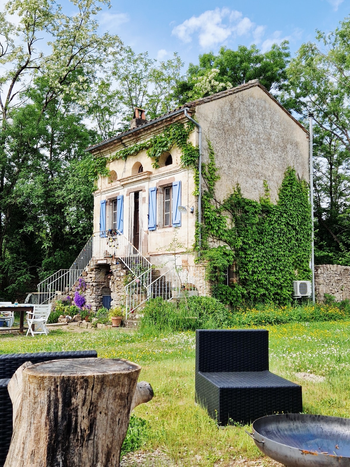 Nest overlooking a sea of trees. Old bread oven turned into a bright house out of sight, with a small Japanese-style courtyard at the entrance, a garden at the back overlooking a forest, in the heart of Quercy. Stone ground floor, wooden floor, wood stove (essential in winter!), hiking trails immediately accessible, many cultural and sporting activities in the area. Ideal for lovers of nature, walks, calm.